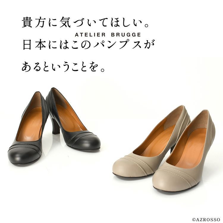 ※特価の為返品・キャンセル・交換無料サービス対応不可。※交換対応は、通常販売時のお買い物通りのご案内です。※サイズ交換希望で、ご交換希望サイズが欠品の場合は返品不可 【即納】走れるパンプス 幅広 ラウンドトゥ 7.5cm ヒールパンプス 日本製 アトリエブルージュ ATELIER BRUGGE ビジネスやフォーマルに
