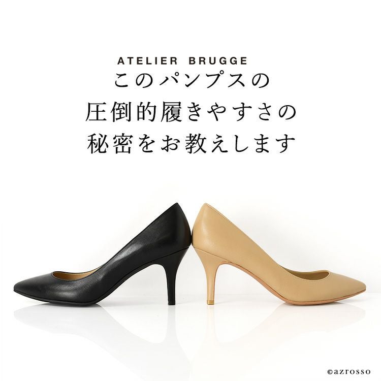 ※特価の為返品・キャンセル・交換無料サービス対応不可。※交換対応は、通常販売時のお買い物通りのご案内です。※サイズ交換希望で、ご交換希望サイズが欠品の場合は返品不可 【即納】7.5cm ヒールパンプス アトリエブルージュ ポインテッドトゥ 日本製 ATELIER BRUGGE