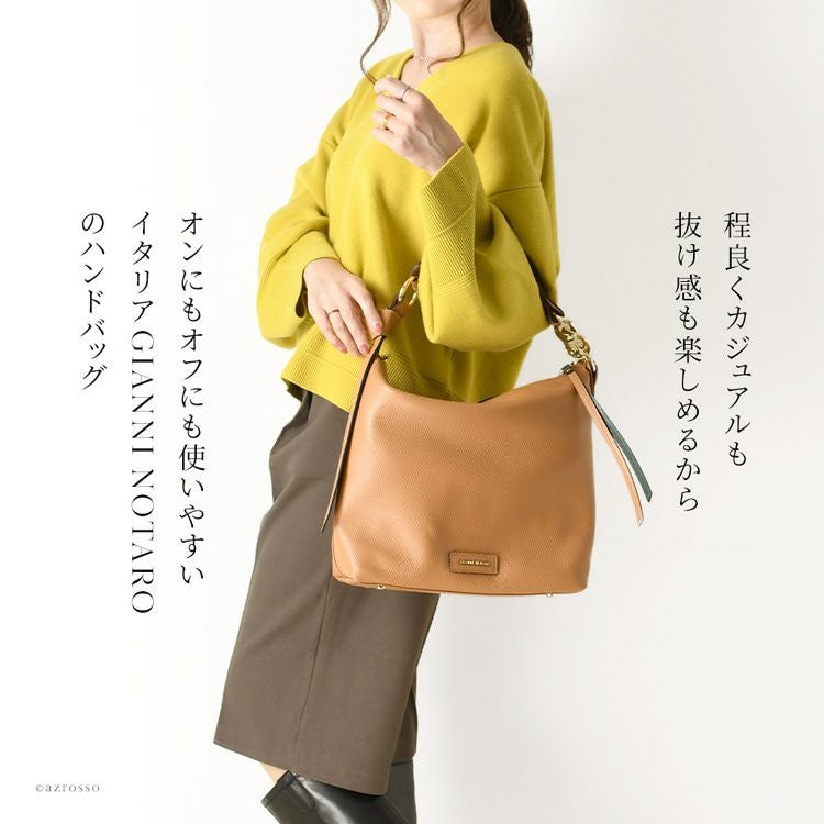 オンにもオフにも使えるくたっと柔らかフォルムのハンドバッグをイタリアGIANNI NOTARO(ジャンニ・ノターロ)より。ショルダーバッグ、ワンハンドルバッグとして使える2way仕様 通勤バッグ 2way a4 ハンドバッグ ワンハンドル 肩掛け オフィス ビジネス バッグ ショルダーバッグ 本革 イタリア製 レザー 黒 ブラック 茶色 キャメル