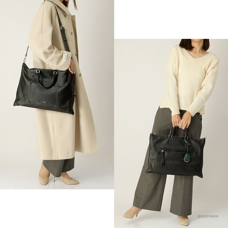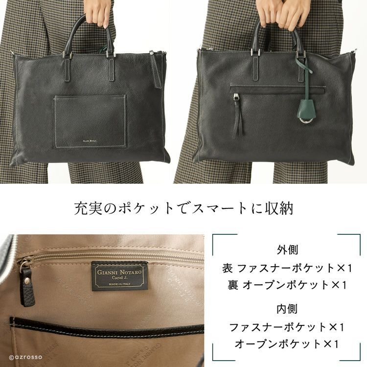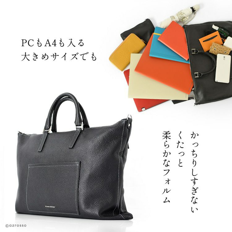 くたっと柔らかい、こなれ感のある薄マチ本革バッグをイタリアGIANNI NOTARO(ジャンニ・ノターロ)より。A4対応、ショルダーストラップ付きで肩掛け、斜め掛けもできる2way仕様 通勤バッグ オフィス ビジネスバッグ A4 2way ハンドバッグ 肩掛け ショルダーバッグ 本革 イタリア製 レザー 黒 ブラック 薄マチ