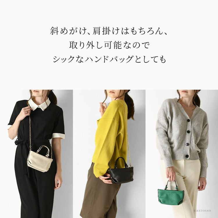 普段使いからフォーマルにも持てる上質レザー×洗練デザインのイタリア製ミニバッグ。ハンドバッグのハンドル部分の金具を外すだけで、そのままショルダーバッグ変わる2way仕様 イタリア製 2way ハンドバッグ ショルダーバッグ ミニ 小さめ レディース 金具なし イタリアブランド バッグ 普段使いもできるフォーマルバッグ 本革