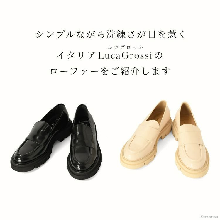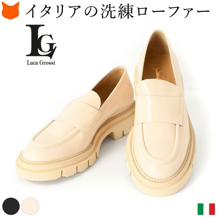 足元が華やぐビットローファーをイタリアブランドLucaGrossi(ルカグロッシ)より。ブランド独自の屈曲性に優れたタンクソールで歩きやすく疲れない快適な履き心地 ローファー 厚底 本革 ビットローファー コンフォート チャンキーソール 4cm パンプス マニッシュ シューズ ビット ローファー イタリア製 ブランド グレー アイボリー 25cm 25.5cm