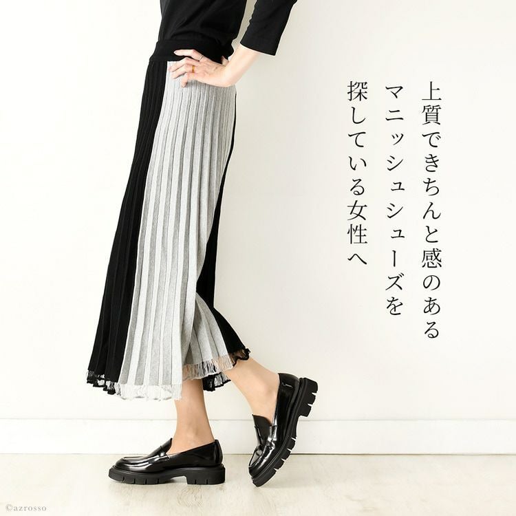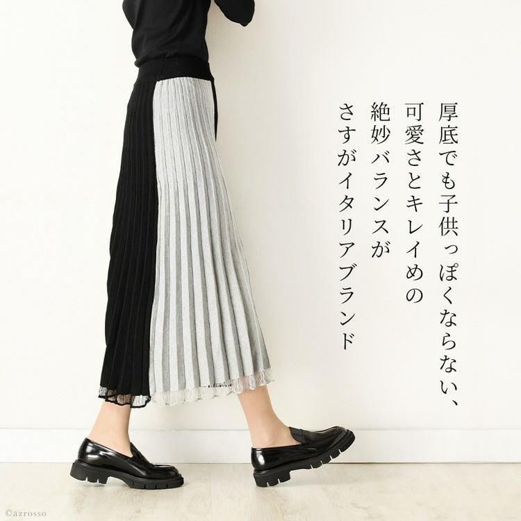 ※特価の為返品・キャンセル・交換無料サービス対応不可。※交換対応は、通常販売時のお買い物通りのご案内です。※サイズ交換希望で、ご交換希望サイズが欠品の場合は返品不可 ローファー 厚底 大人 黒 本革 チャンキー タンクソール ローファー 3.5cm ヒール コンフォート マニッシュシューズ イタリア製 ブランド ブラック 白 アイボリー 25cm 25.5cm