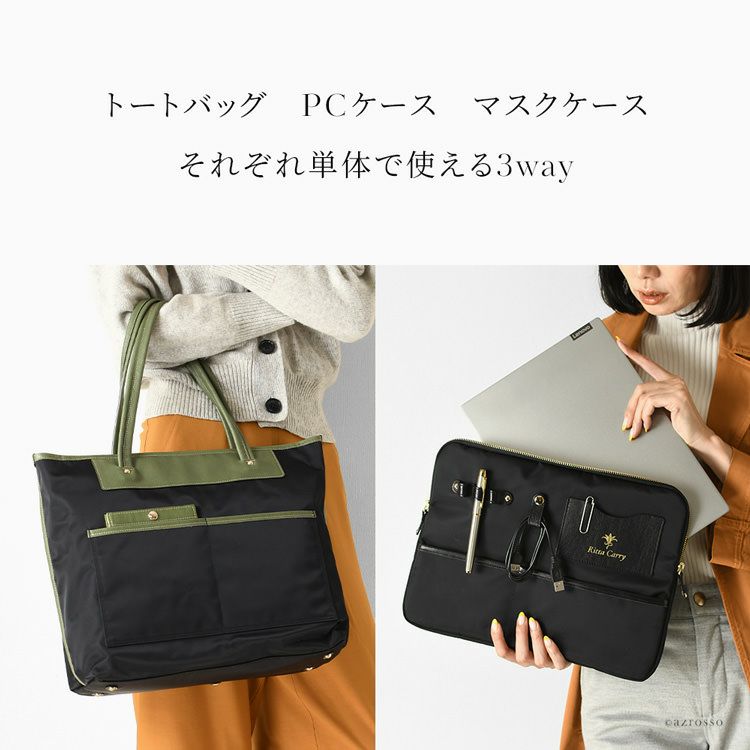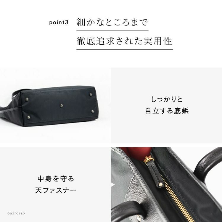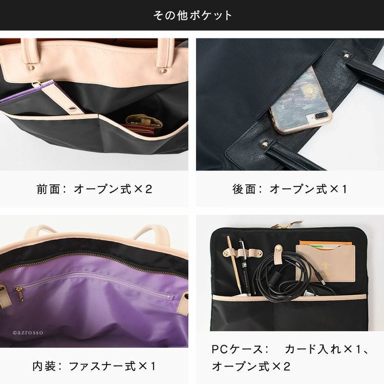 多様なワークスタイルに最適な日本製ビジネスバッグ。長めの革製持ち手で肩掛けでき、軽量大容量かつ持ち運びやすい。パソコン収納ケース、ペンホルダー付きのマルチ機能バッグ ビジネスバッグ 大容量 軽量 PC収納 マスクケース 3way A4収納 通勤用 ビジネストート 革製 持ち手長い 仕切り 多い 肩掛け ナイロン 本革 バッグインバッグ トートバッグ 底鋲付き 黒 ブラック 日本製 レディース