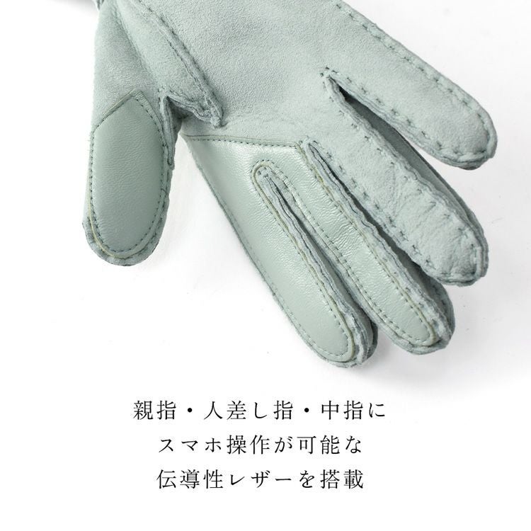 スマホ対応 MOONツイード×ラムレザー 手袋 レディース レザーグローブ イタリアで大賞受賞の日本ブランド 抗菌防臭・抗ウイルス・帯電防止機能のTiotio裏地。KURODA(クロダ)×イギリスMOON(ムーン)のスマートフォン対応手袋【通常ネコポス配送】