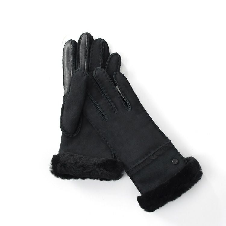 防水×スマホ対応が嬉しいUGG Seamed Tech Glove(アグ シームド テック グローブ)。ふわふわのファートリミングで手首まで暖かい。雨や雪、悪天候の日の通勤におすすめのおしゃれな手袋 スマホ対応 手袋 レディース UGG 防寒 防水 本革 ファー付き アグ Sheepskin Seamed Glove シープスキン グローブ ショート 暖かい かわいいa
