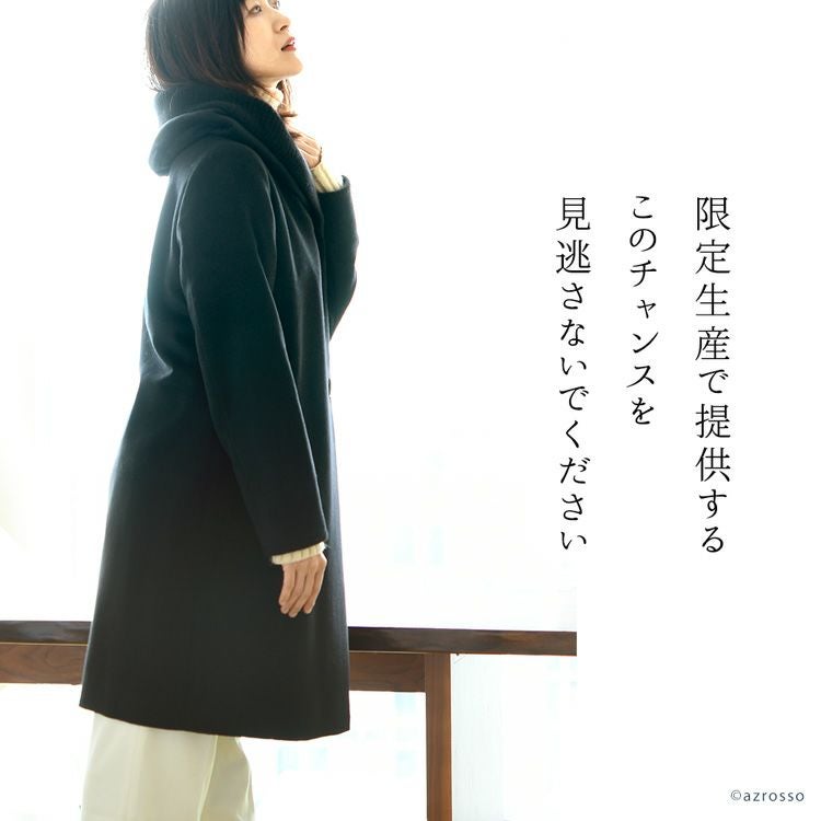 贅沢な艶と軽さと暖かさ。希少なセーブルとカシミヤだけで作るハイクオリティなミドルコート カシミヤコートセーブル レディース 日本製 ミドルコート フード付き ステンカラーコート 軽い