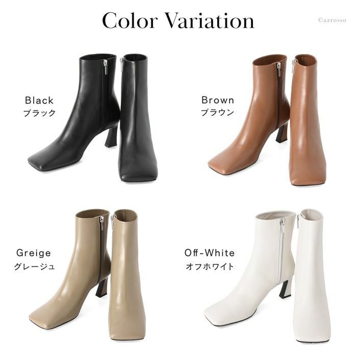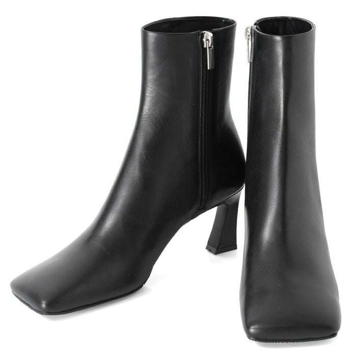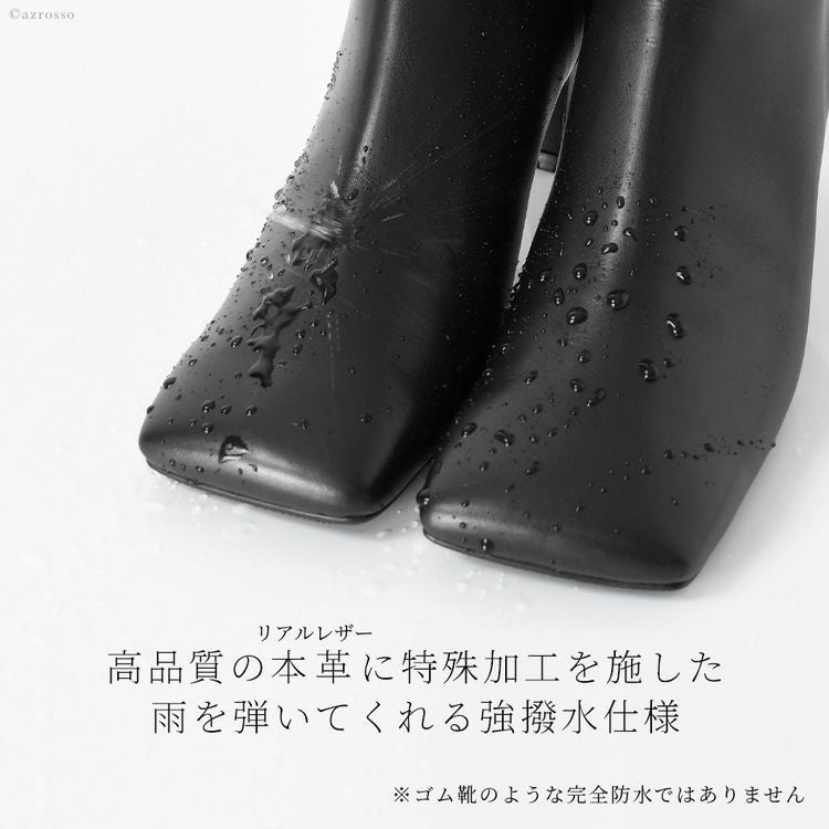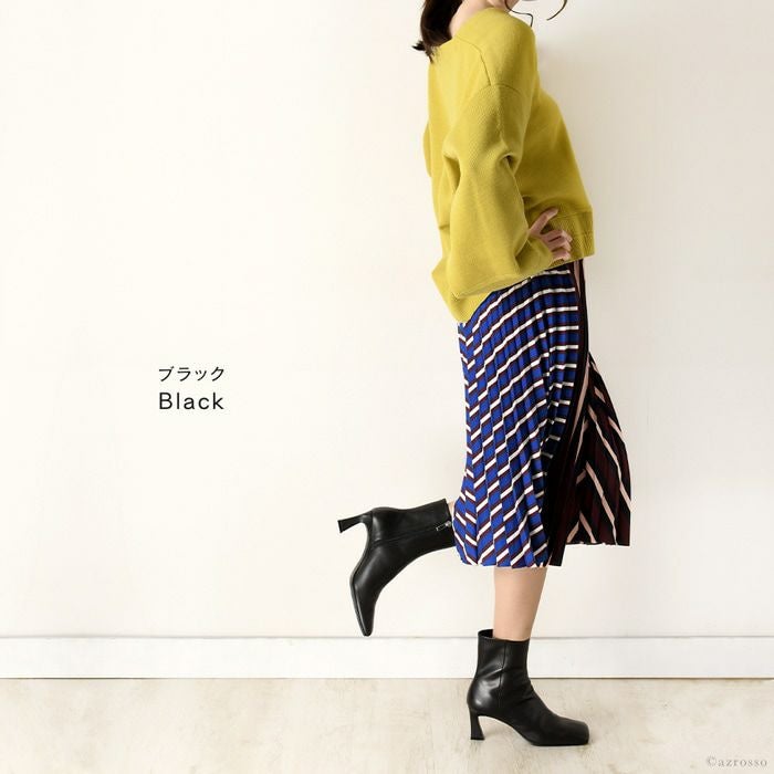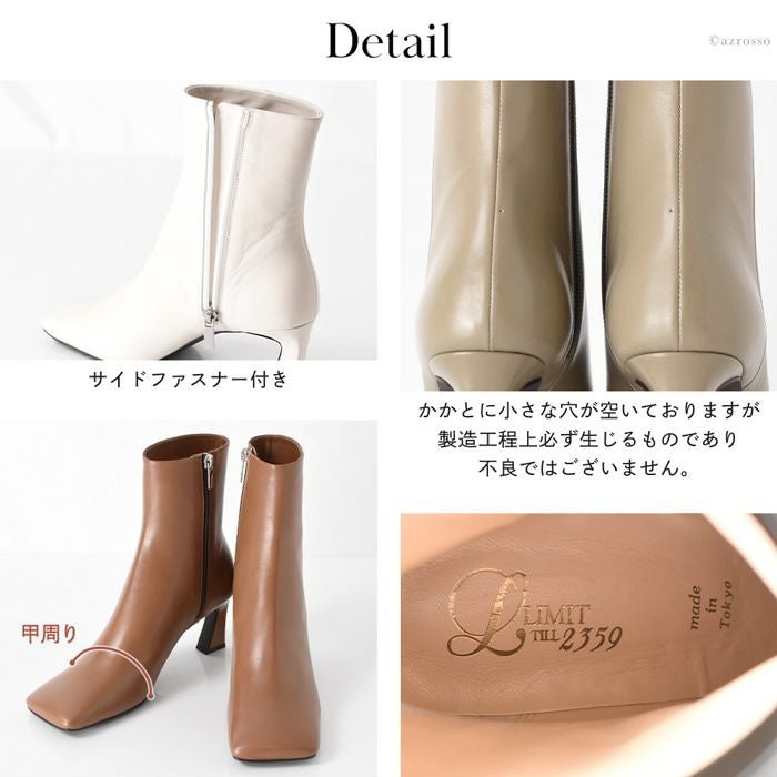 リアルレザーで雨を弾く!日本ブランドLIMIT TILL 2359モードなワイドスクェアブーツ。美脚と安定感を叶える7センチのチャンキーヒール。オールウェザー 21.5cm-24.5cm|ヒール7cm ショートブーツ スクエアトゥ 晴雨兼用 撥水 チャンキーヒール 日本製 リミットティル2359