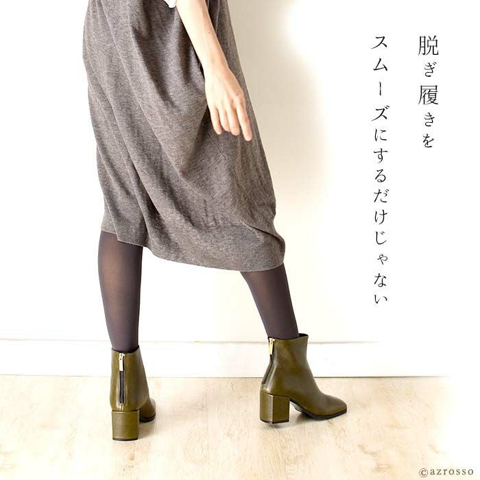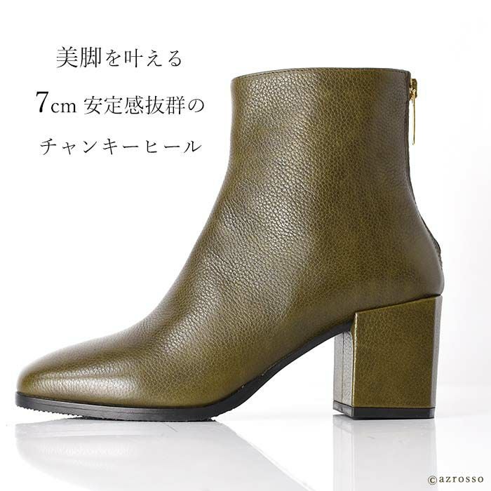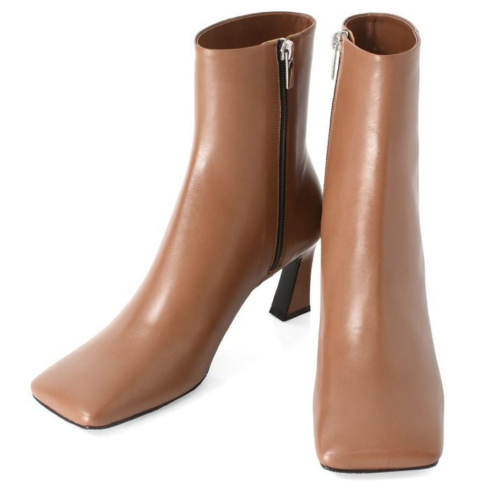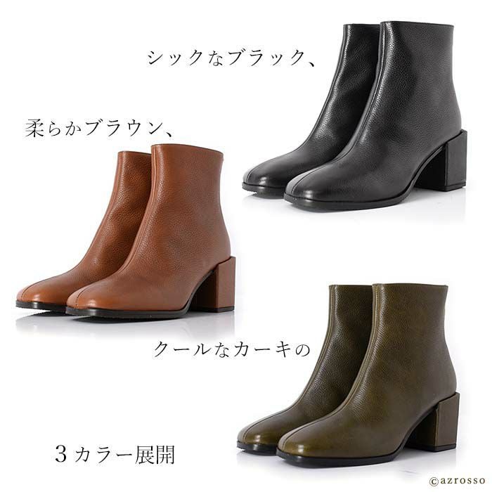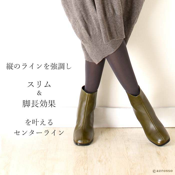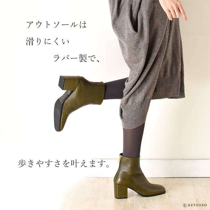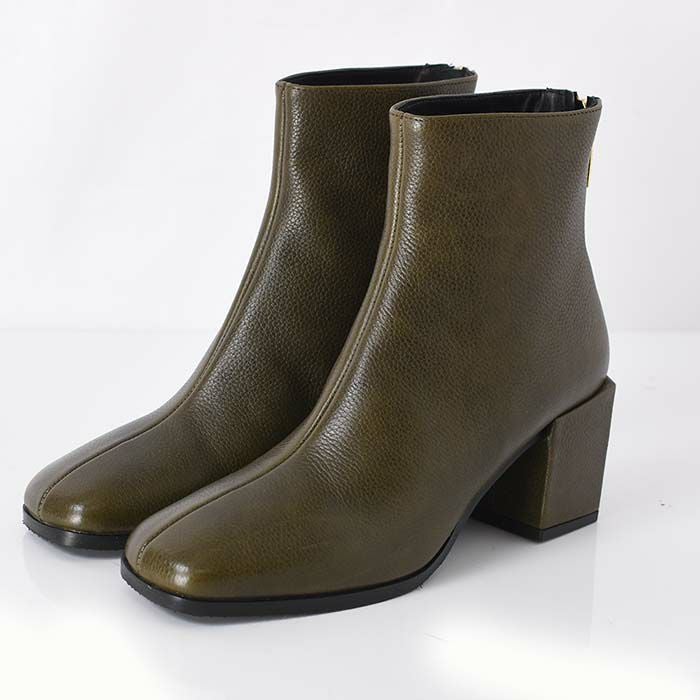 艶やかなカーフレザーを使用したイタリア CARMENS(カルメンズ)のショートブーツ。トレンドのスクエアトゥ、脱ぎ履きの所作を美しく魅せるバックファスナー、チャンキーヒールで快適な履き心地 23cm-25.5cm│ショートブーツ 本革 レザー バックファスナー スクエアトゥ ブーティ チャンキーヒール カルメンズ 黒 ブラック ブラウン カーキ