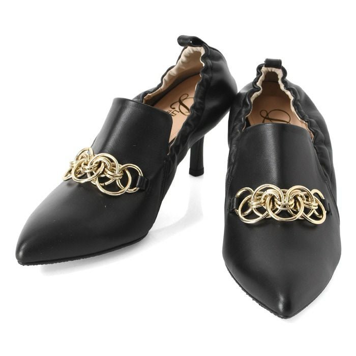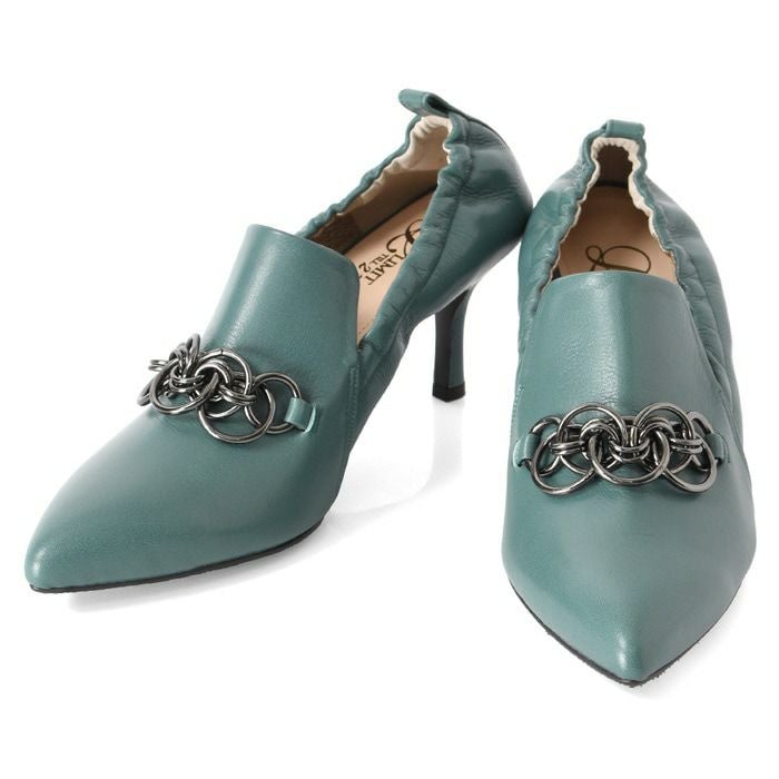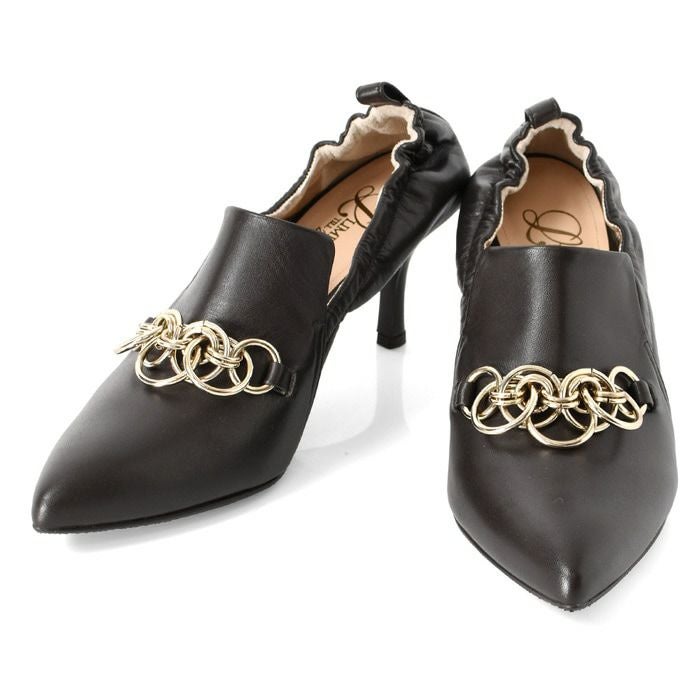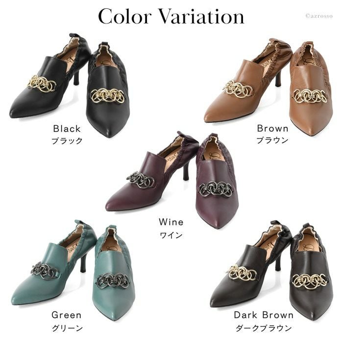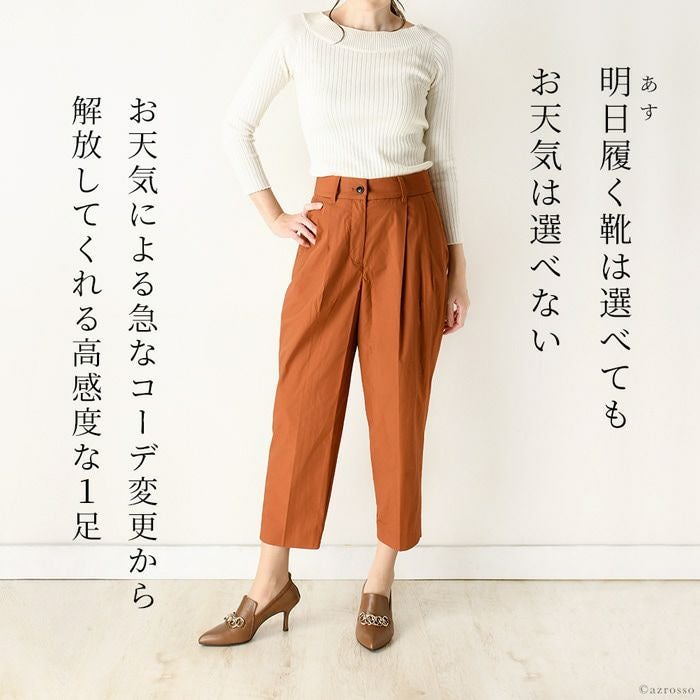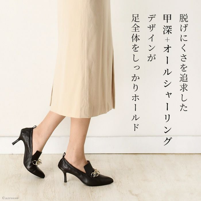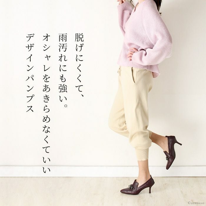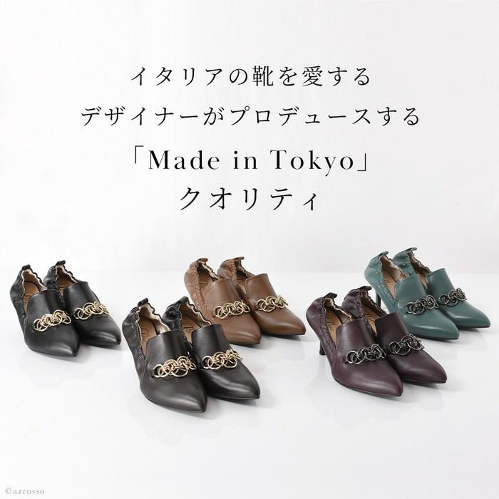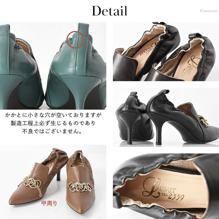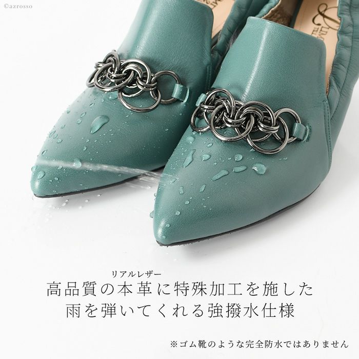 雨、汚れを弾く!履きやすいチェーン付きデザインパンプス 日本ブランド Limit till 2359 オールウェザーパンプス 21.5cm-25cm|ヒール7cm 脱げにくい シャーリング+甲深レザーパンプス 晴雨兼用 革|リミットティル2359