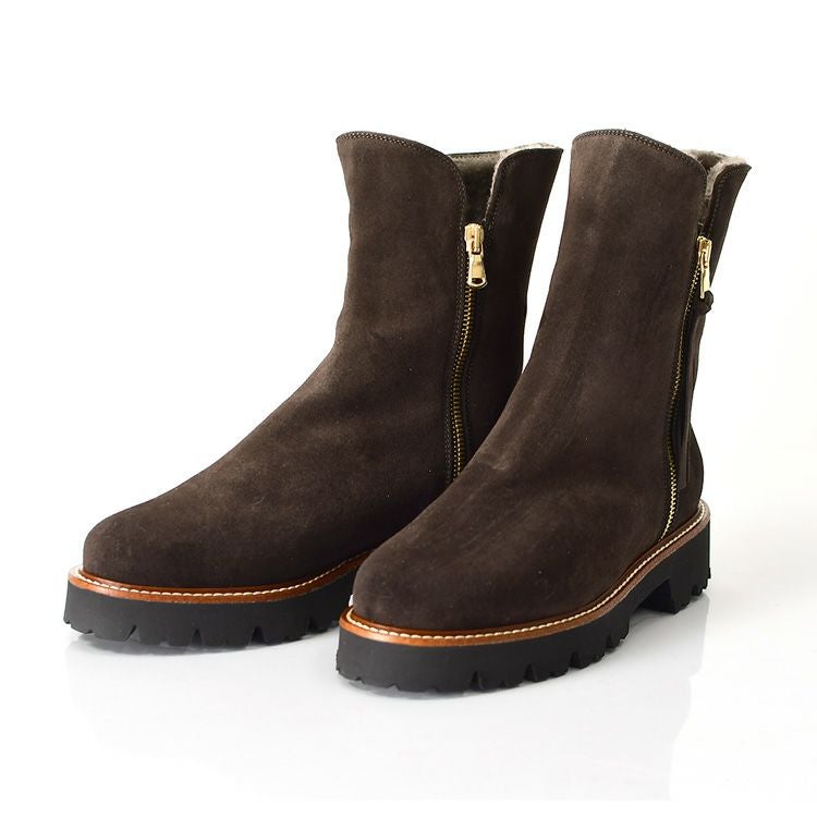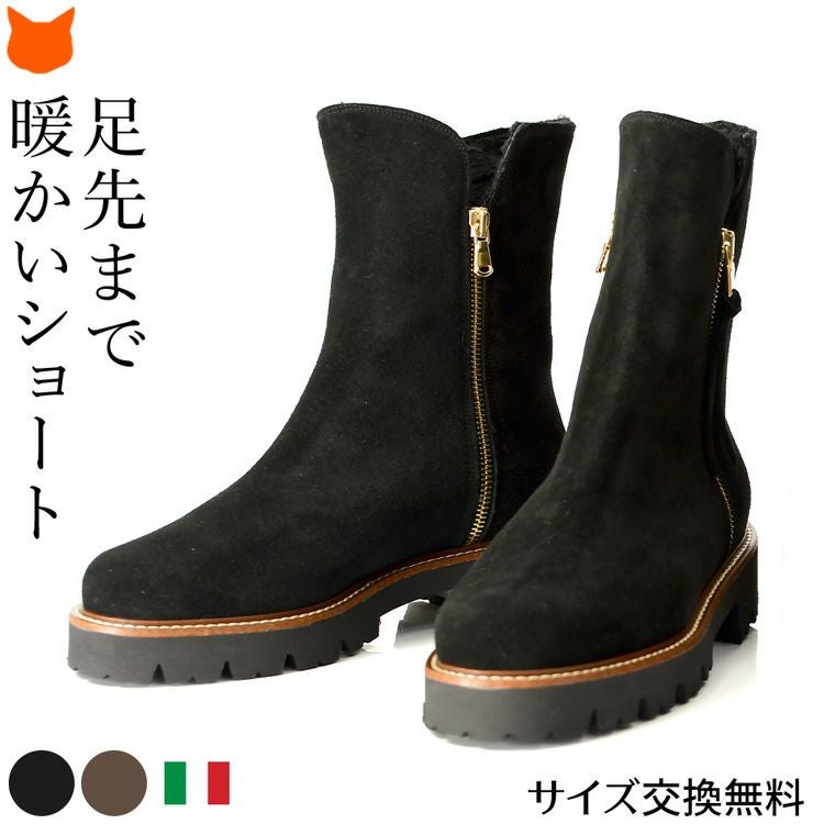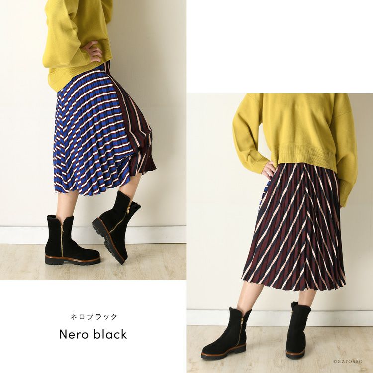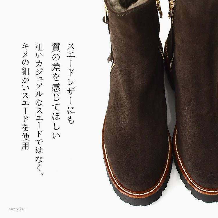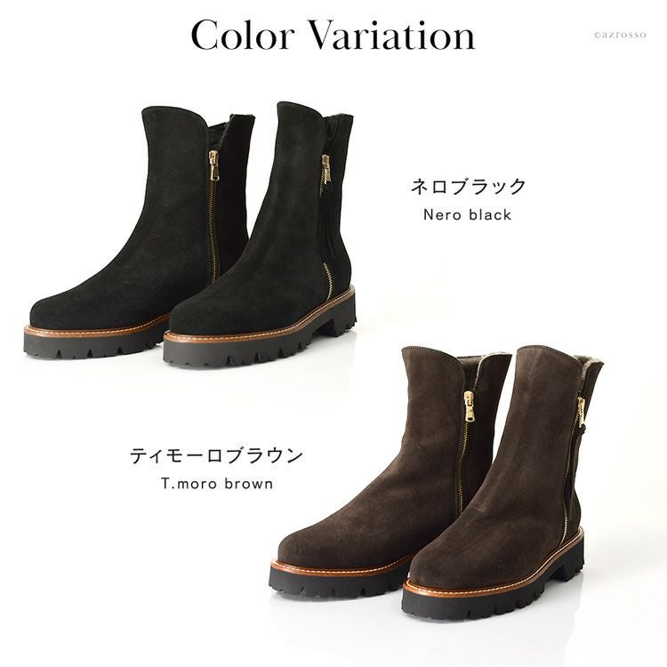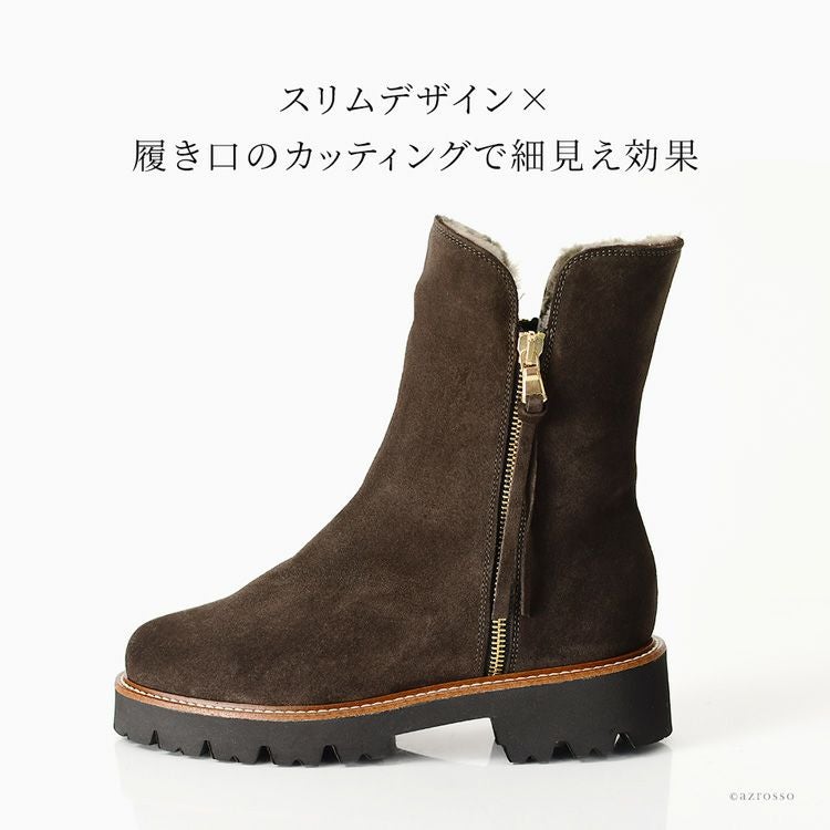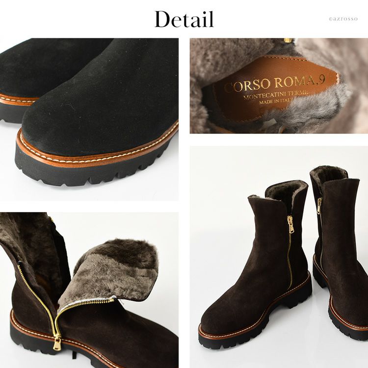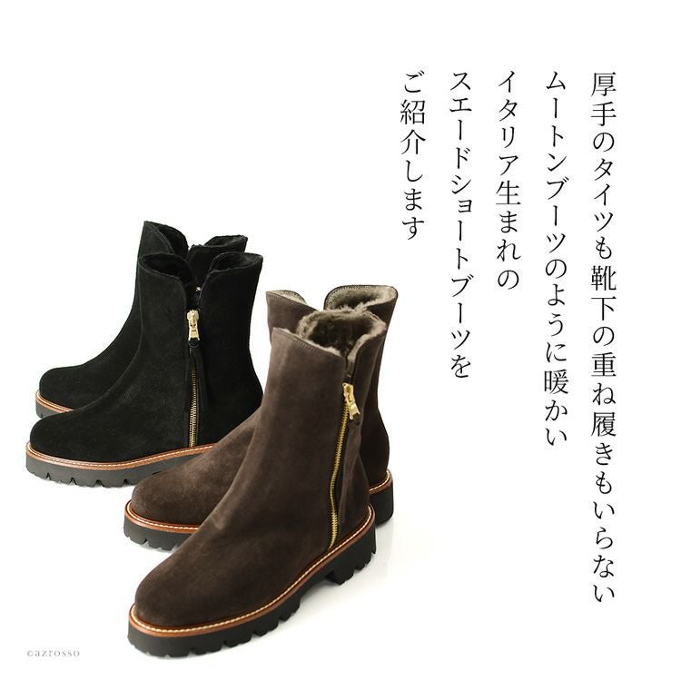 CORSO ROMA 9 コルソローマの細見えムートンブーツ。秋冬の足元を暖かくお洒落に。脱ぎ履きしやすいサイドファスナー付き 23cm-25.5cm|ダブルファスナー ムートンブーツ スエード ショートブーツ 4cmヒール スリム ミドルブーツ イタリア製 ブランド コルソローマ 9 CORSO ROMA 9 ブラック ブラウン