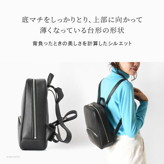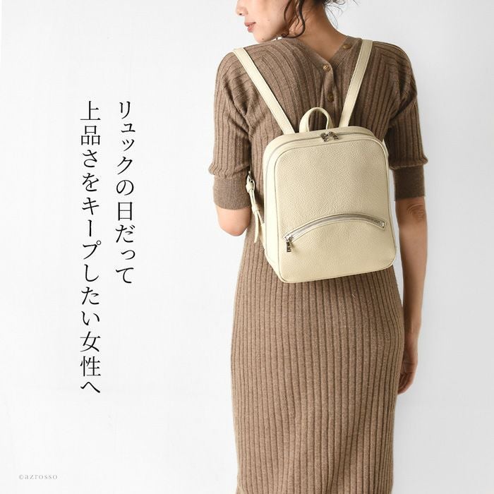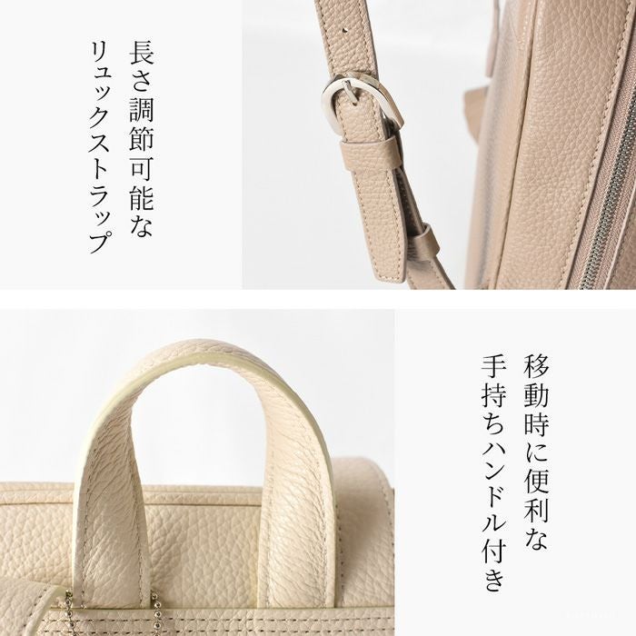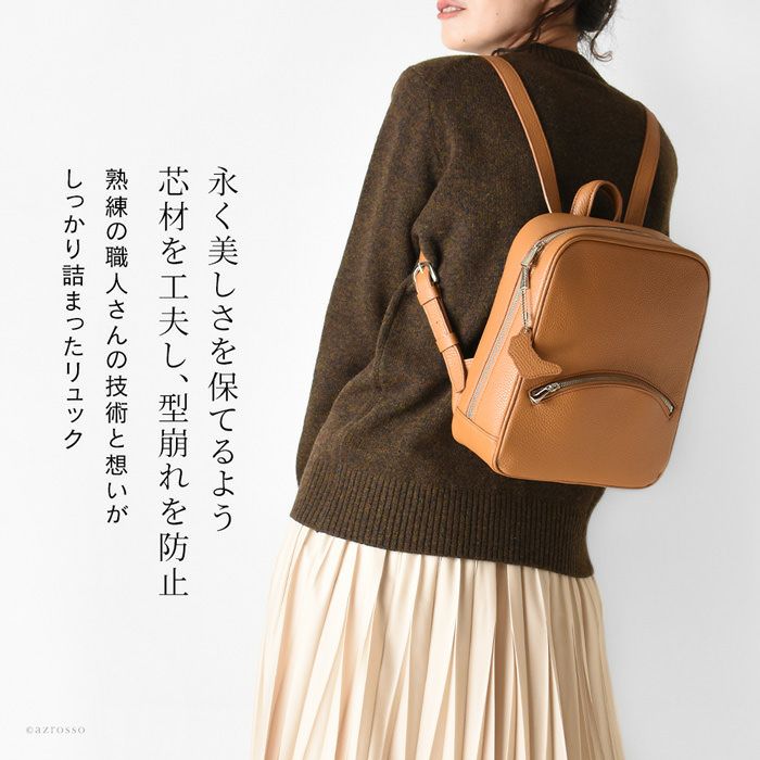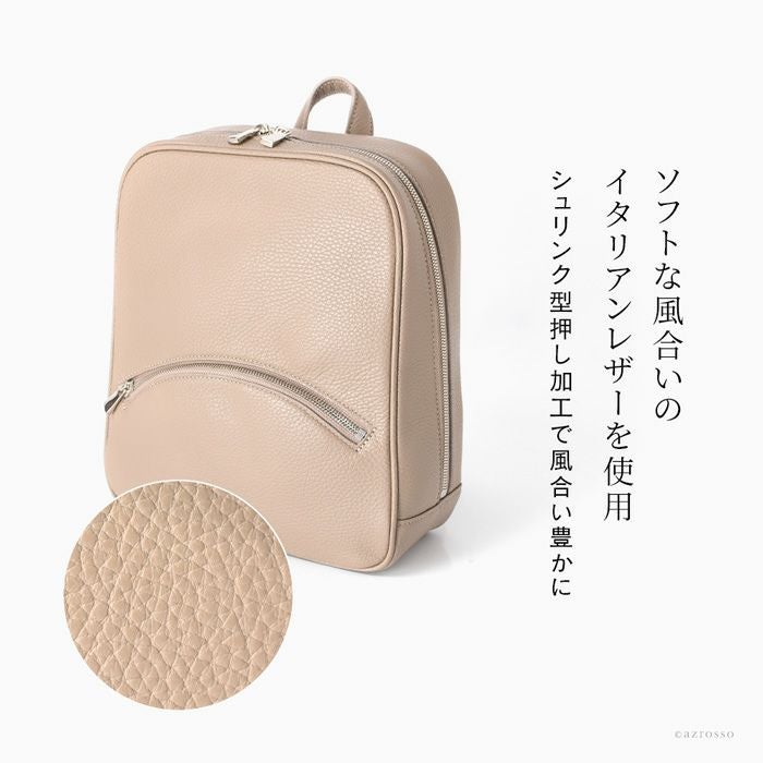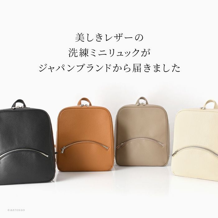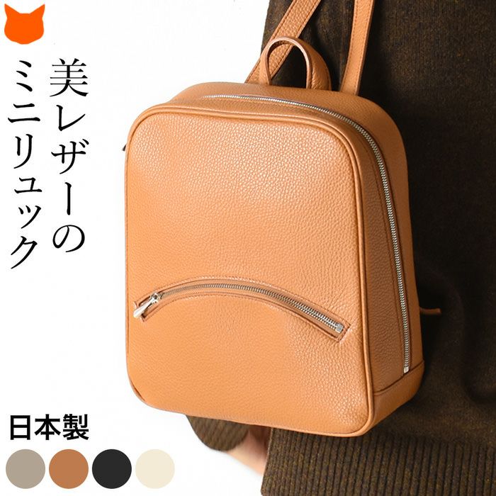 上品なリュックスタイルを作る日本製スクエアリュック。スッキリミニマルだけど大容量。シュリンク加工を施したイタリアンレザーの美しさが際立つシンプルなデザイン。大阪かばん認定商品の証であるタグ付き シュリンクレザー ミニリュック 大容量 B5収納 本革 日本製 大阪カバン ブランド 鞄 トープ キャメル ブラック アイボリー