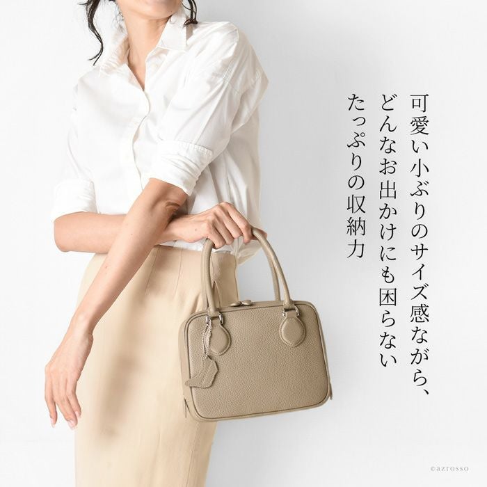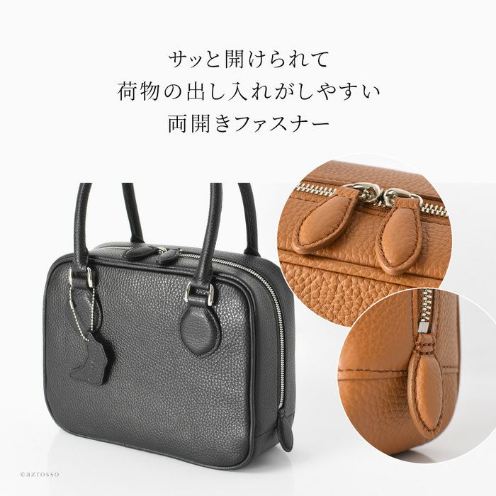 オンにもオフにも使いやすいシンプルなデザイン。美しいイタリアンレザーを使用した日本製レディースミニボストンバッグ。コンパクトなサイズ感ながらたっぷりの収納力、両開きファスナー、底鋲付きで使い勝手抜群 日本製 本革 ハンドバッグ レザー ミニボストンバッグ トープ キャメル 黒 ブラック アイボリー 底鋲付き ミニバッグ