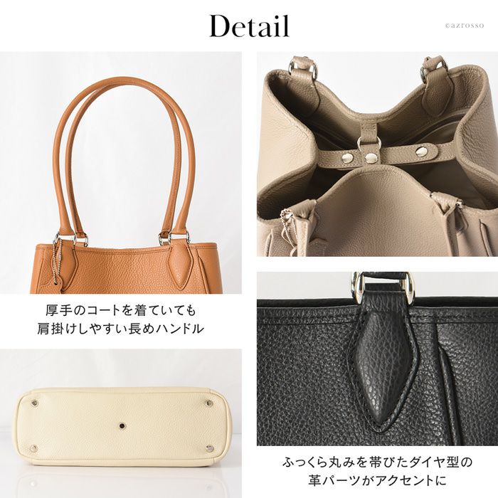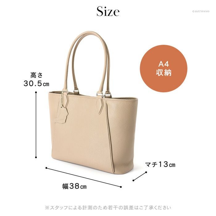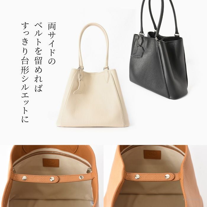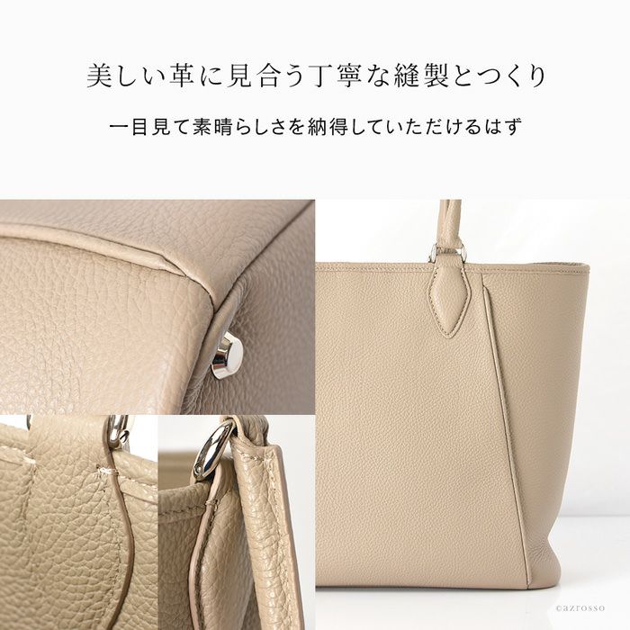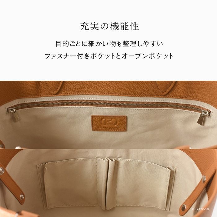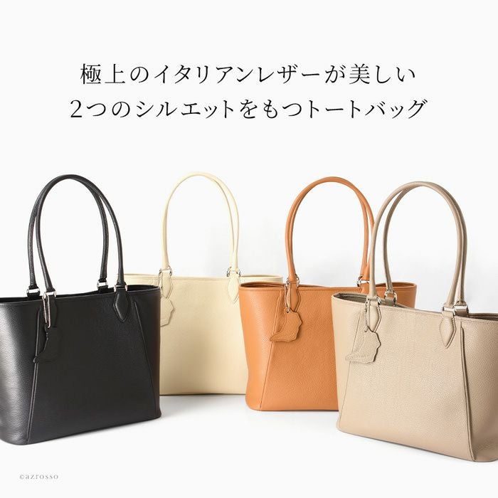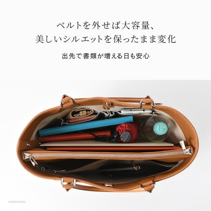 日本の職人が生み出す逸品、働く女性の為の美しいレザートート。上質なイタリアンレザーが活きるシンプルなデザインで通勤をよりスタイリッシュに。仕切り、バッグインバッグ、クラッチバッグになるポーチ付き 日本製 レザー トートバッグ 2way a4収納 ビジネスバッグ 通勤 本革 トープ キャメル 黒 ブラック アイボリー バッグインバッグ付き 底鋲付き