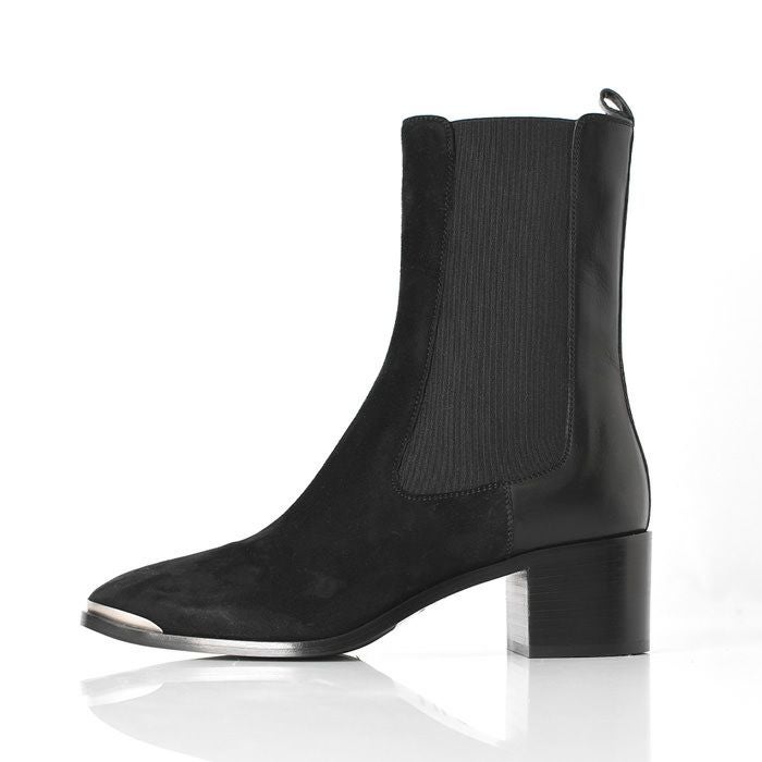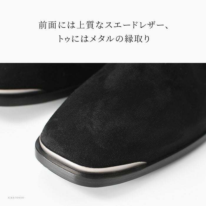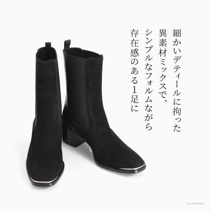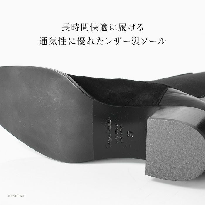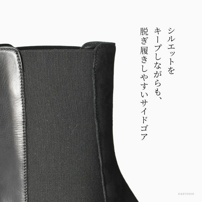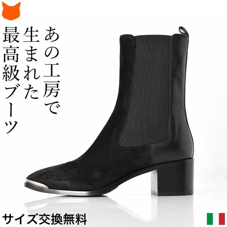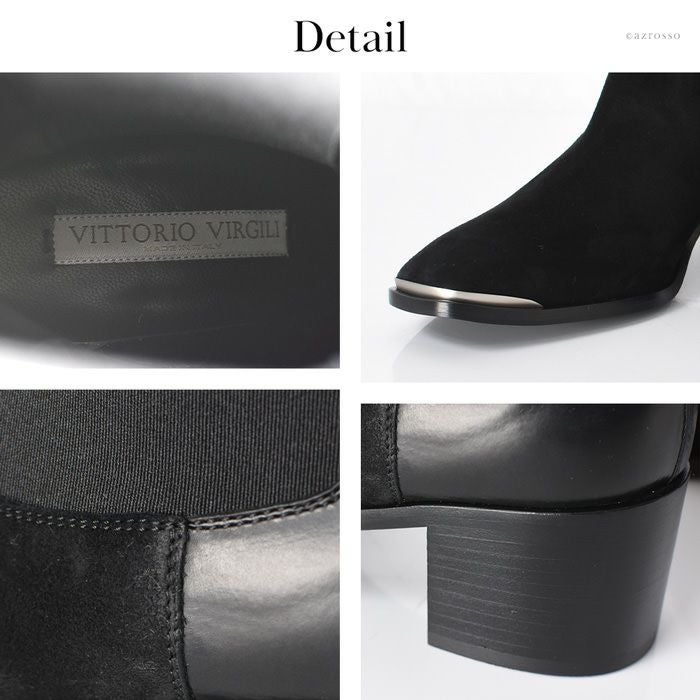 SARTOREおよびICEBERGの靴の製造元工房であるVITTORIO VIRGILI(ヴィットリオ ヴィルジリ)の美しいサイドゴアブーツ。異素材ミックス、トゥのメタルパーツとデティールに拘ったお洒落なショートブーツ 23cm-25.5cm│ サイドゴアブーツ レザー スエード イタリア製 ブランド VITTORIO VIRGILI ヴィットリオ ヴィルジリ 本革 おしゃれ 5cmヒール 黒 ブラック