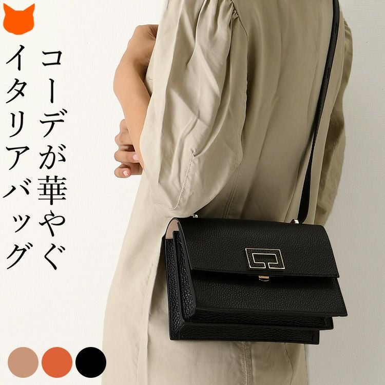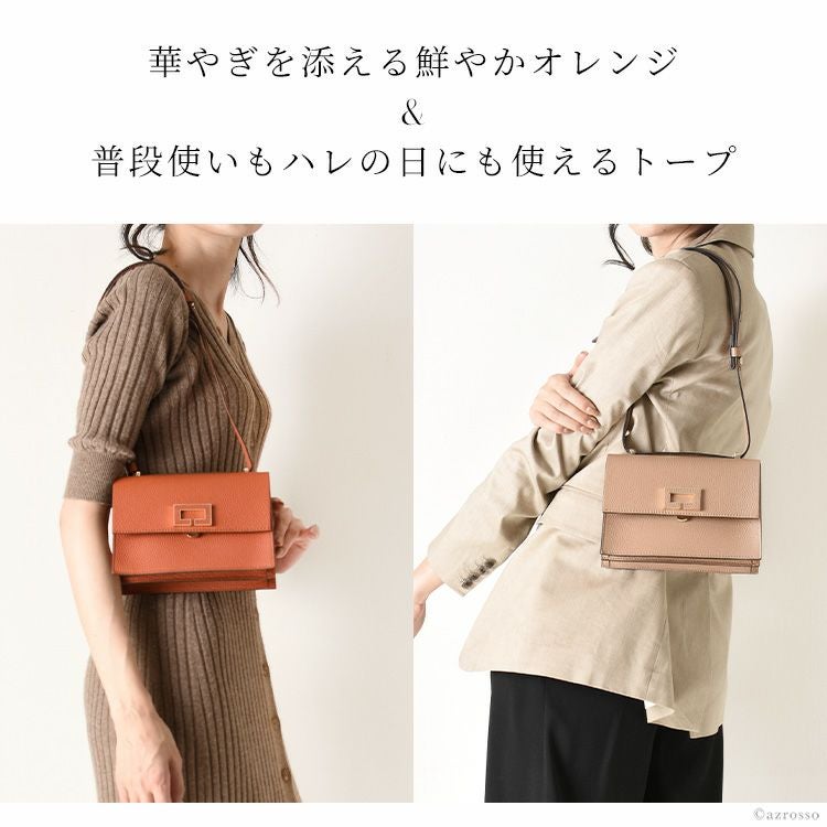 コーデに華やぎを添える上品なミニバッグをイタリアLORISTELLA(ロリステッラ)から。長さ調節可能なストラップでショルダーバッグ、長めハンドルのハンドバッグとしても使える イタリア製 バッグ スクエア ショルダーバッグ フォーマルバッグ ミニバッグ 本革 レザー トープ ベージュ オレンジ