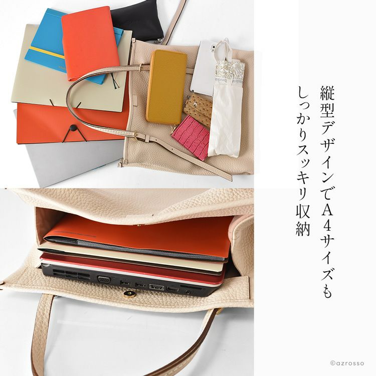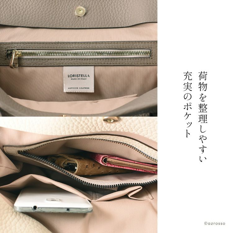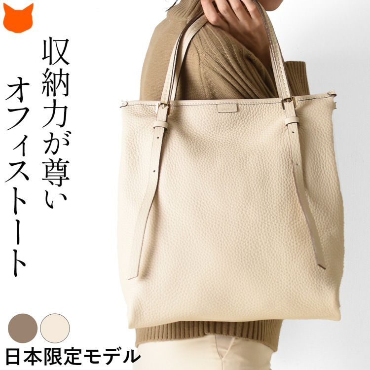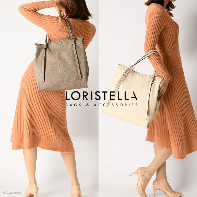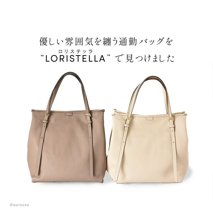 イタリアのアルチザンが紡ぐ洗練バッグブランド loristella(ロリステッラ)の大きめトート。長さ調節可能なストラップ、キズがつきにくいシボ加工の上質レザーバッグは通勤 オフィスに最適 日本限定モデル トートバッグ 通勤 バッグ 縦型 A4収納 大容量 本革 イタリア製 ビジネスバッグ トープ ベージュ ホワイト