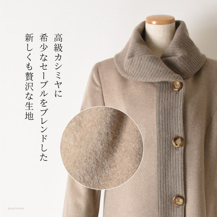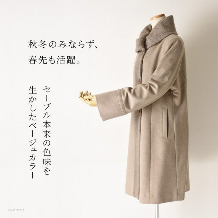 贅沢な艶と軽さと暖かさ。希少なセーブルとカシミヤだけで作るハイクオリティなミドルコート カシミヤコートセーブル レディース 日本製 ミドルコート ステンカラーコート