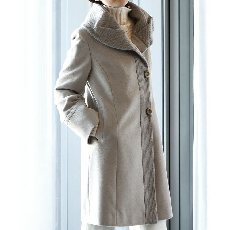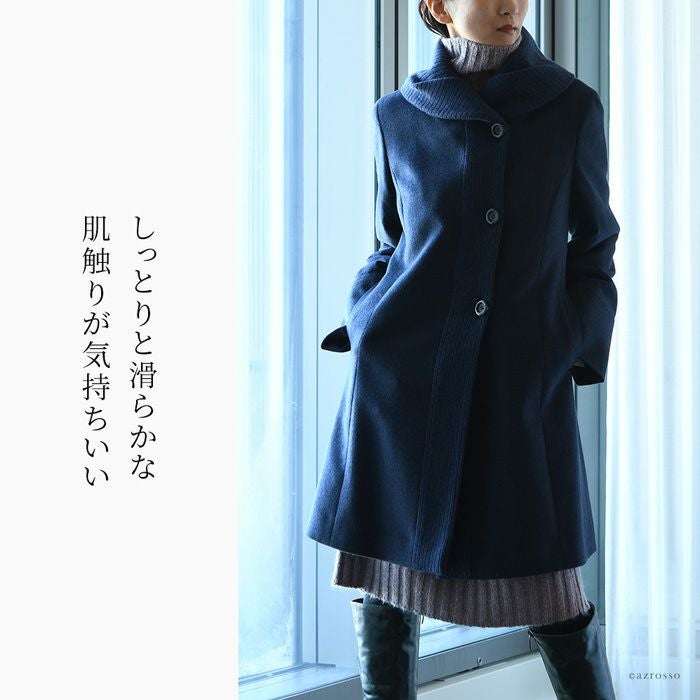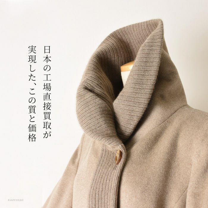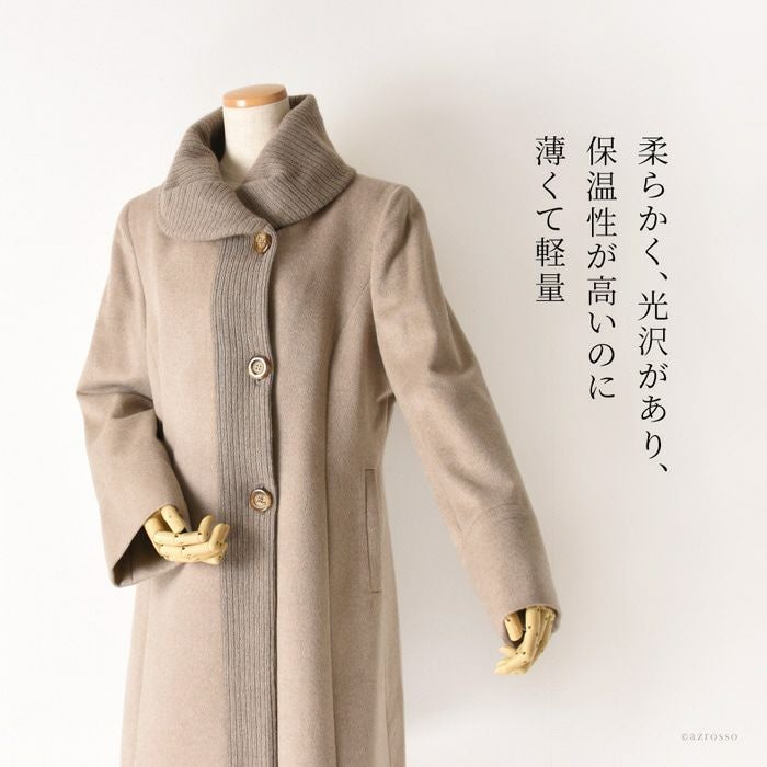 贅沢な艶と軽さと暖かさ。オールジャパンメイドのハイクオリティなミドルコート カシミヤコート セーブル ベージュ 春コート 秋 冬 レディース 日本製 ミドルコート ステンカラーコート