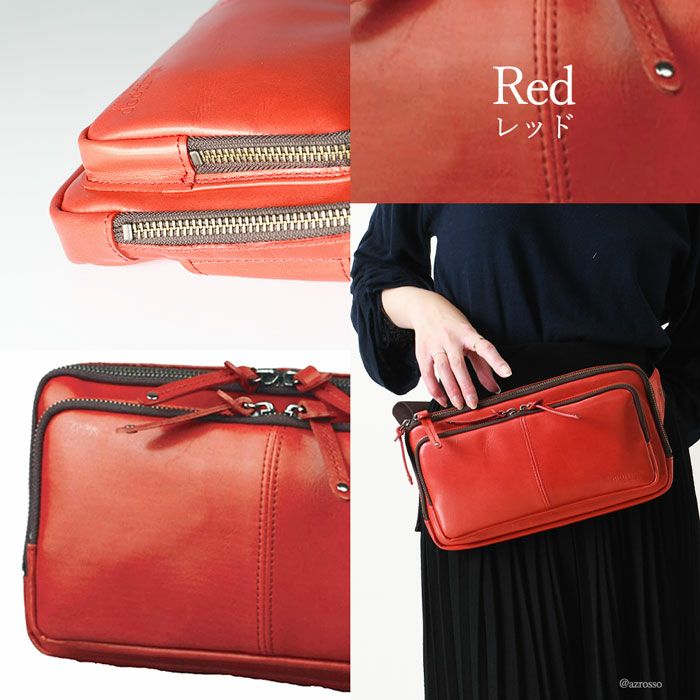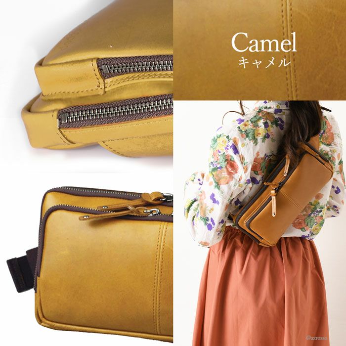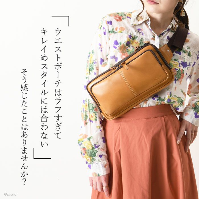 よくあるウエストバッグはカジュアルすぎて使いにくい。そんな女性にピッタリの薄マチウエストバッグ。メイン収納を2層に分けた使い勝手の良いデザインのボディバッグです 牛革 ウエストポーチ ボディバッグ 本革 レザー バッグ 日本製 大きめ 薄マチ Wファスナー レディース