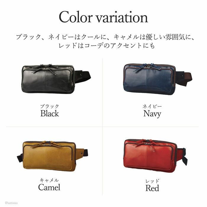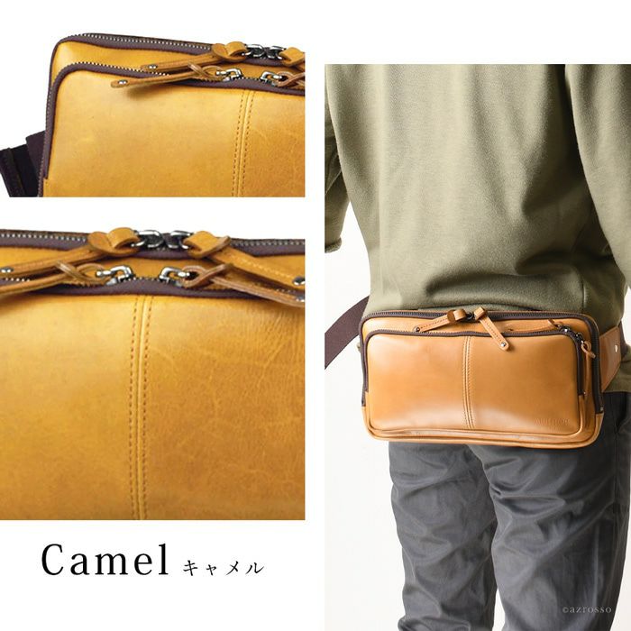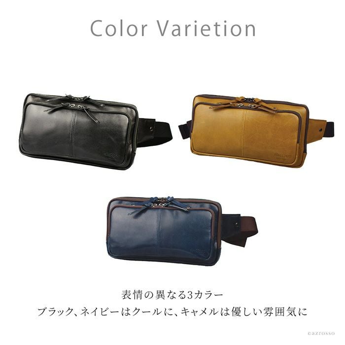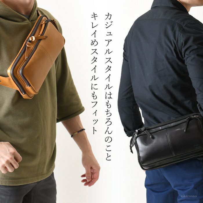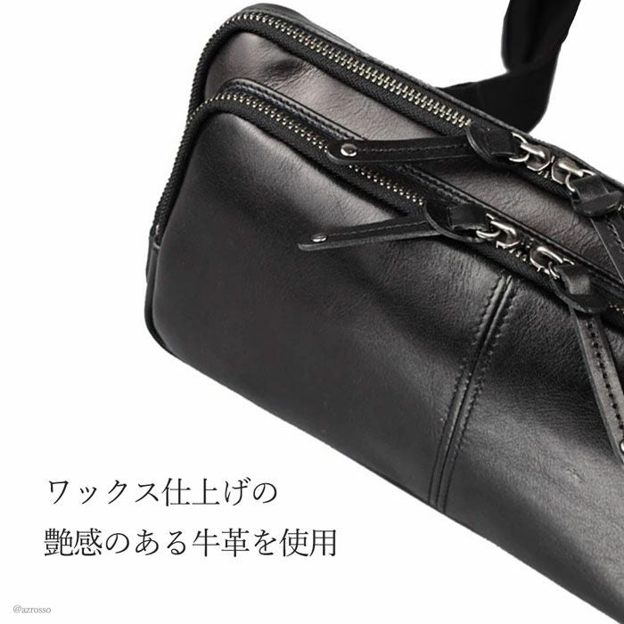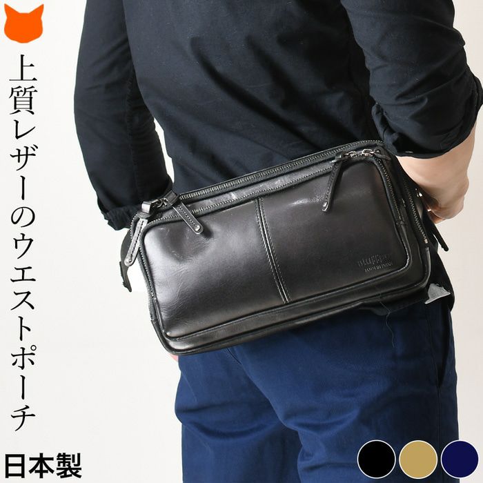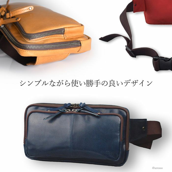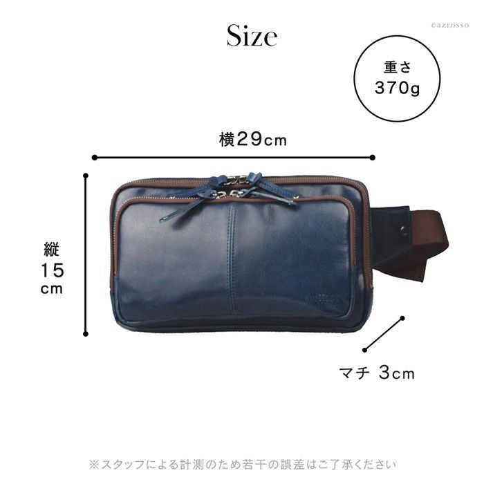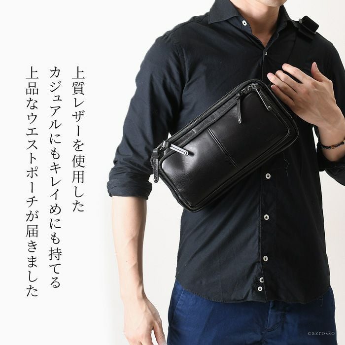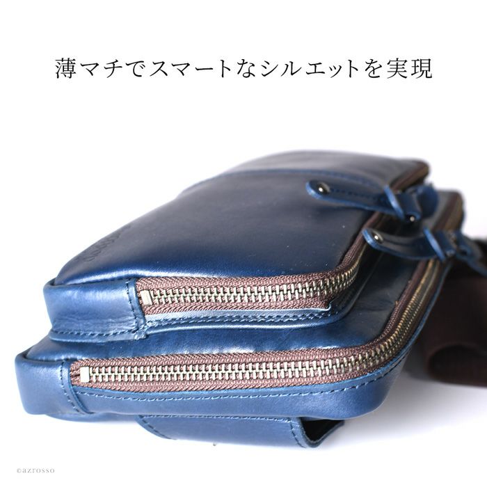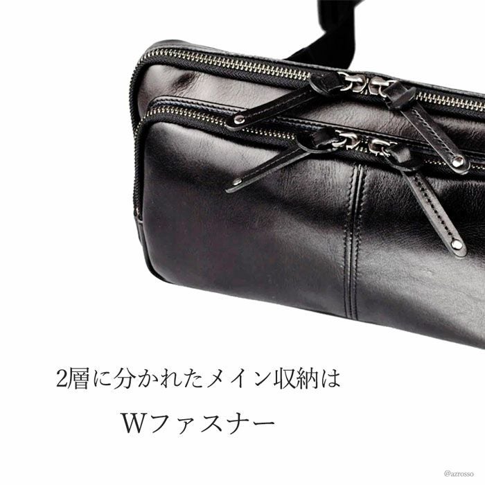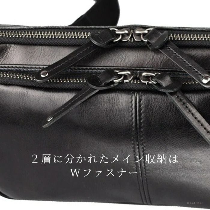 よくあるウエストバッグはカジュアルすぎて使いにくい。そんな男性にピッタリの薄マチのメンズウエストバッグ。メイン収納を2層に分けた使い勝手の良いデザインのボディバッグです 牛革 ウエストポーチ ボディバッグ 本革 レザー バッグ 日本製 大きめ 薄マチ Wファスナー メンズ