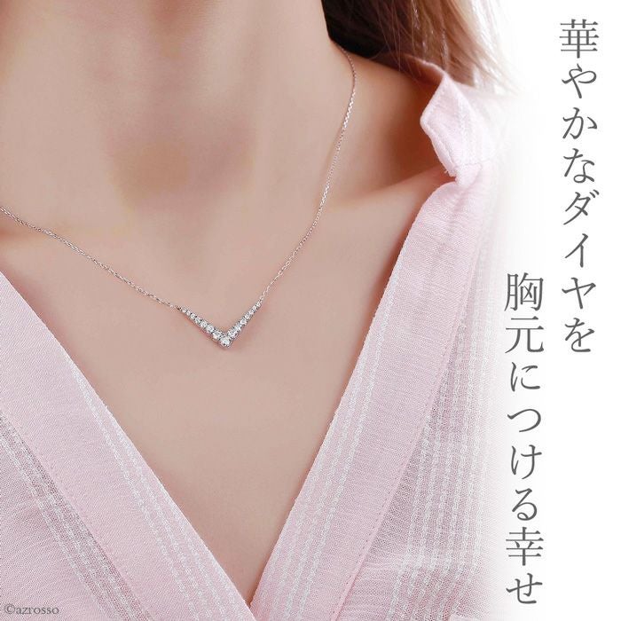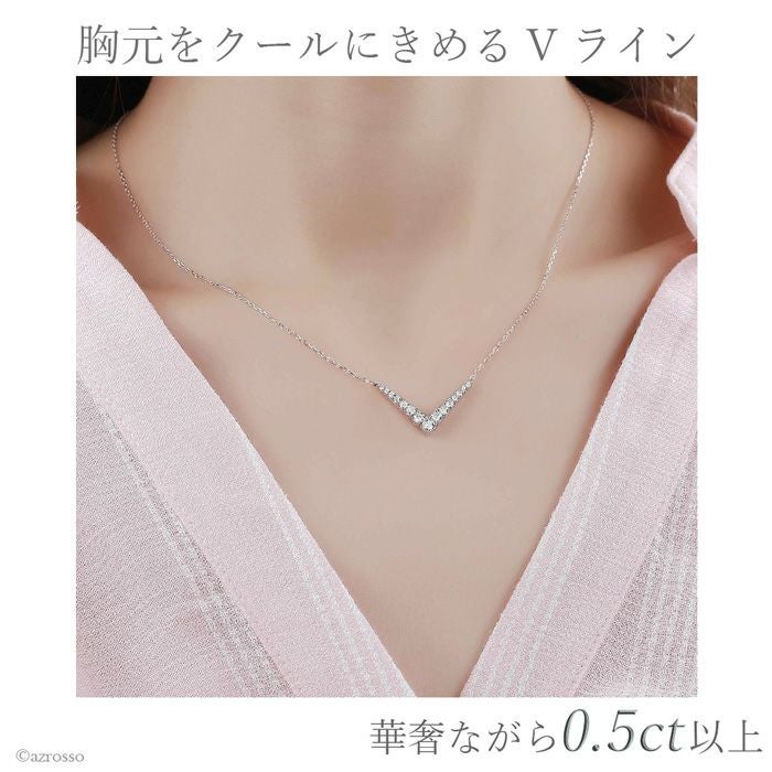 毎日つけられるシンプルなV字ネックレス【SMILING ROCKS】 V型 ダイヤモンド ネックレス 10k ホワイトゴールド 0.5カラット ラボグロウンダイヤモンド