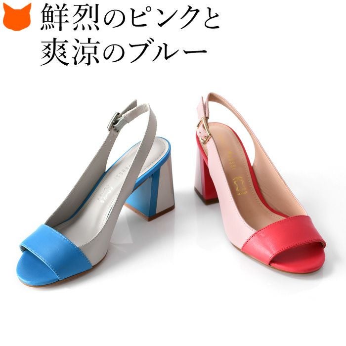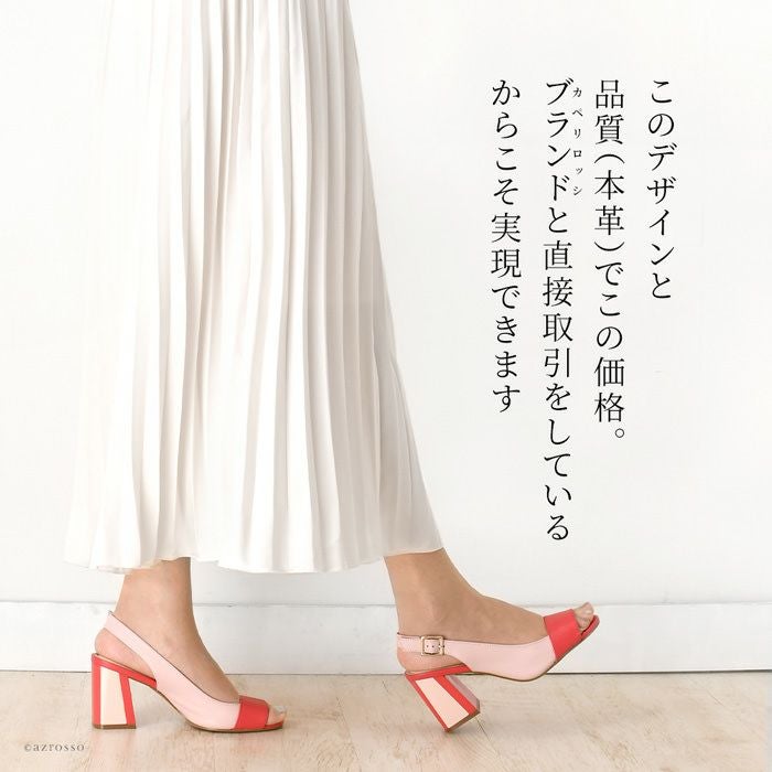 ※特価の為返品・キャンセル・交換無料サービス対応不可。※交換対応は、通常販売時のお買い物通りのご案内です。※サイズ交換希望で、ご交換希望サイズが欠品の場合は返品不可 23cm-25.5cm│レザー サンダル フレアヒール 8cm 本革 バイカラー ブランド カペリロッシ CAPELLI ROSSI ピンク ブルー