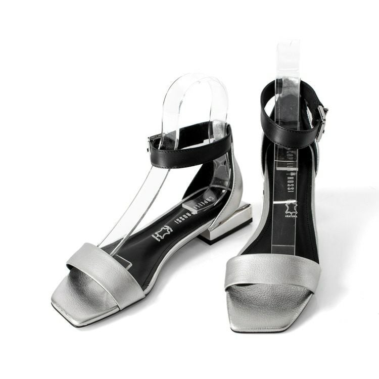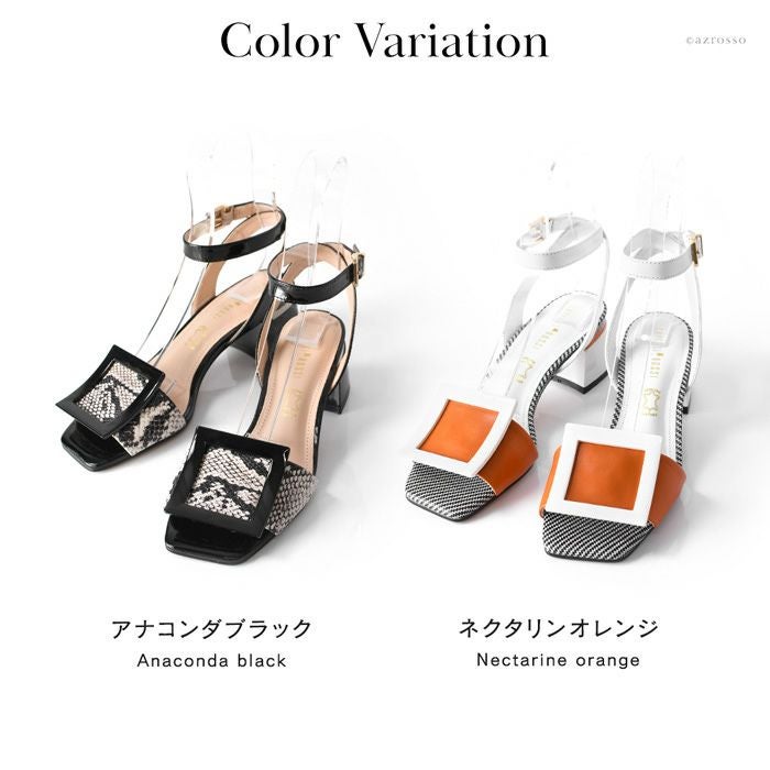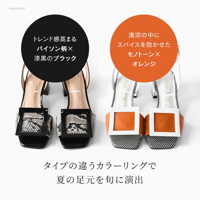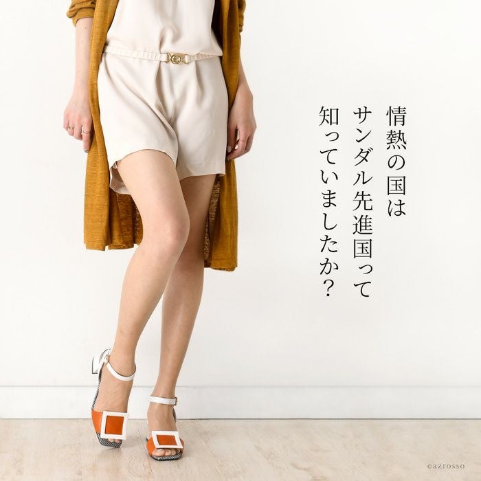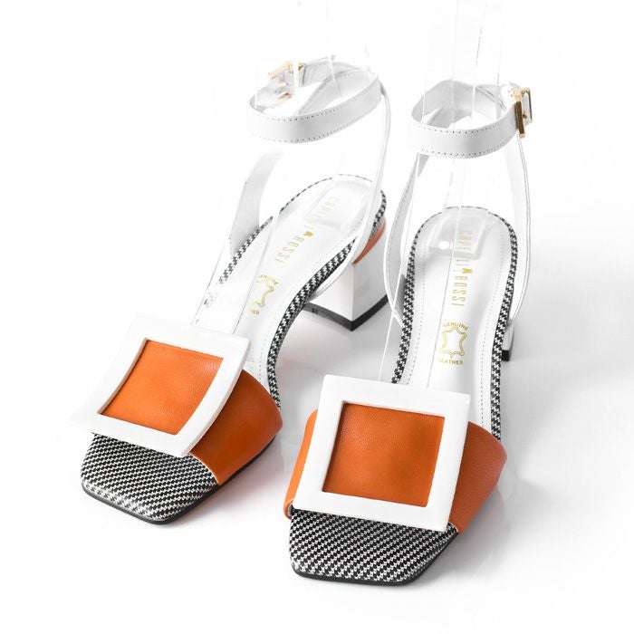 ※特価の為返品・キャンセル・交換無料サービス対応不可。※交換対応は、通常販売時のお買い物通りのご案内です。※サイズ交換希望で、ご交換希望サイズが欠品の場合は返品不可 23cm-25.5cm│レザー サンダル チャンキーヒール 5.5cm 本革 スクエアモチーフ ブランド カペリロッシ CAPELLI ROSSI ブラック オレンジ