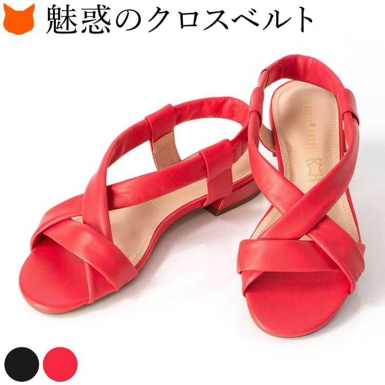夏の足元にインパクトを与える情熱の国ブラジル生まれのカペリロッシ(CAPELLI ROSSI)のクロスベルトサンダル。自信を持たせてくれる心躍るピンクと漆黒ブラックをご用意 23cm-25.5cm│クロスベルト サンダル レザー ぺたんこ ヒール 1.5cm 2cm 本革 おしゃれ ブランド カペリロッシ CAPELLI ROSSI ブラック ピンク レッド