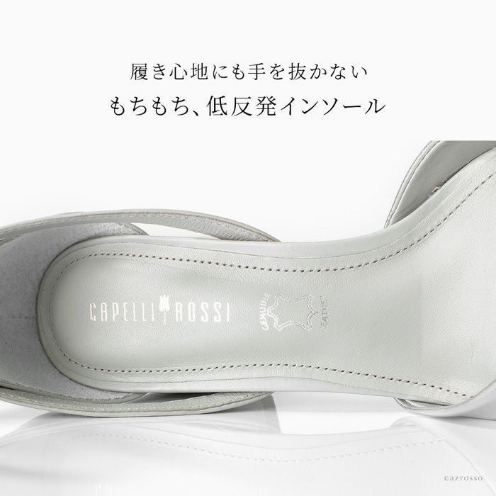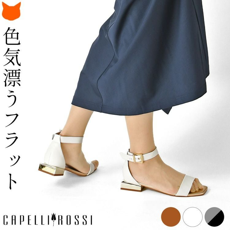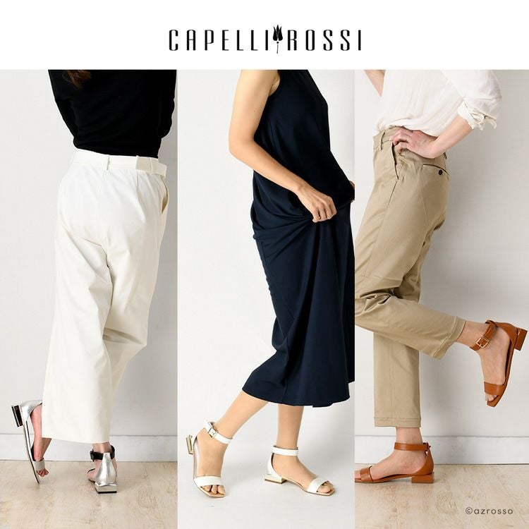 涼しげホワイト、クールなシルバー、上品なキャメルのレザーサンダルを情熱の国ブラジル発のシューズブランド、CAPELLI ROSSI(カペリロッシ)から。華奢な足元をつくるアンクルストラップ付き 23cm-25.5cm│レザー サンダル ローヒール 2.5cm 本革 アンクルベルト ブランド カペリロッシ CAPELLI ROSSI ホワイト ゴールド シルバー キャメル ブラウン バイカラー