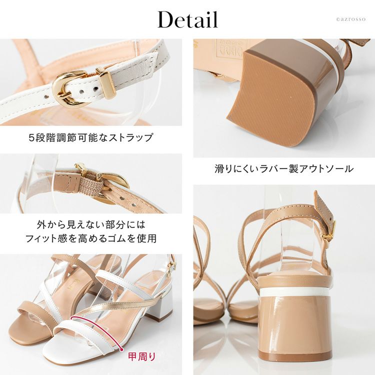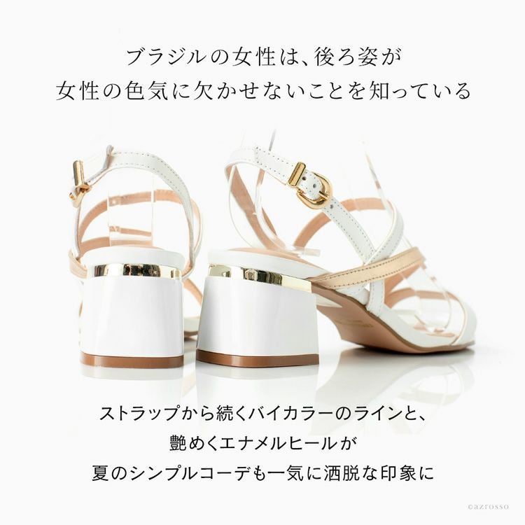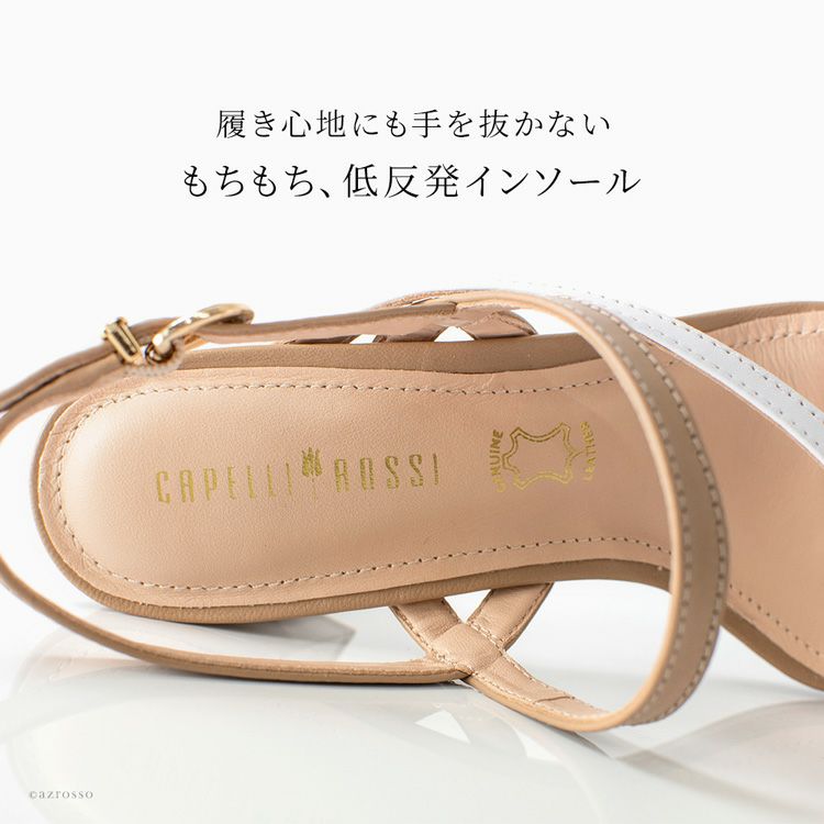 涼しげホワイト&洗練ベージュのレザーサンダルを情熱の国ブラジル発のシューズブランド、CAPELLI ROSSI(カペリロッシ)から。マルチストラップ付き+太ヒールで安定感抜群 23cm-25.5cm│レザー サンダル チャンキーヒール 5.5cm 本革 細ストラップ ブランド カペリロッシ CAPELLI ROSSI ホワイト ベージュ