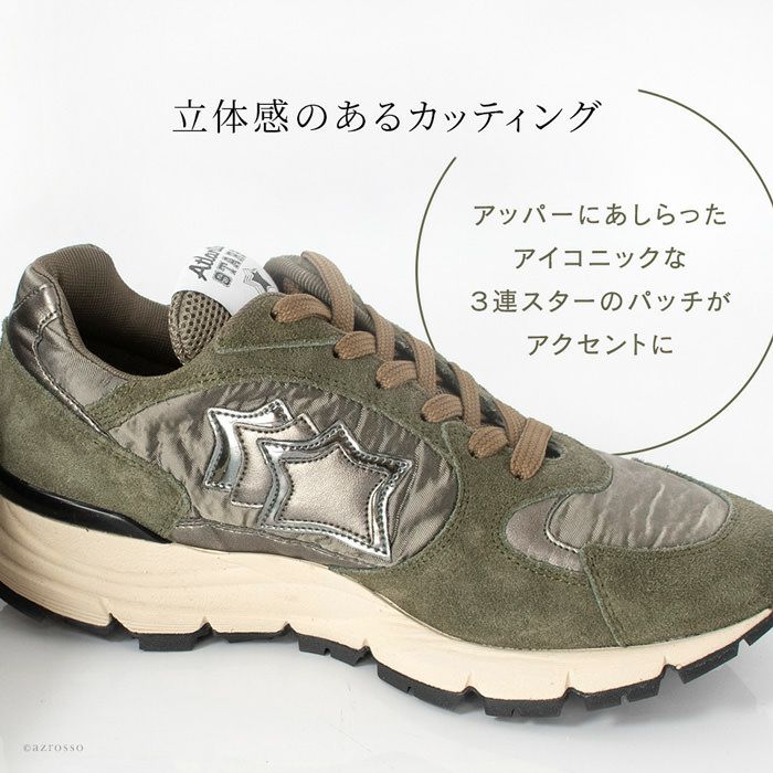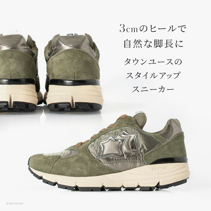ラグジュアリーなスニーカーを展開するシューズブランド、アトランティクスターズがつくる、上品なレディース限定モデル MIRA(ミラ)シリーズ。100%made in Italyに拘った極上のフィット感 アトランティックスターズ スニーカー レディース ミラ MIRA AV F11 WOMEN 厚底 3cm スエード レザー オリーブ グリーン カーキ イタリア製 ブランド Atlantic STARS