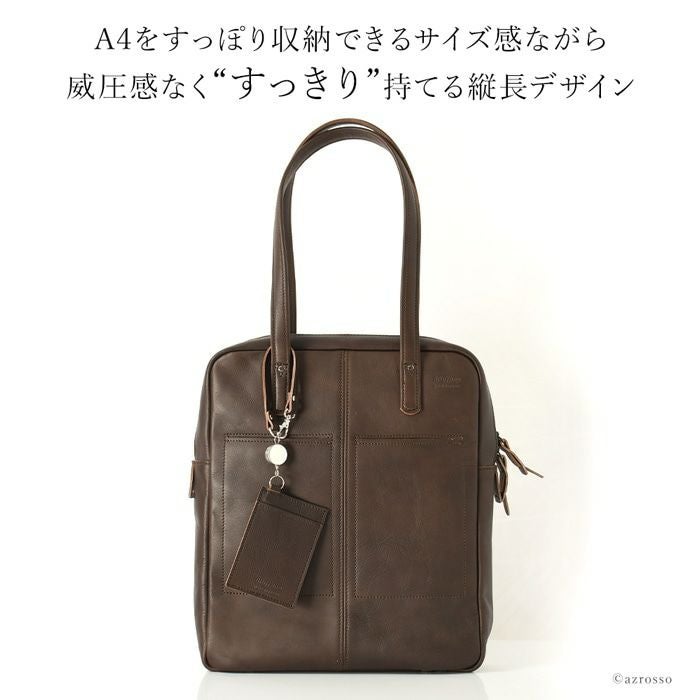 充実ポケットで整理しやすいA4対応のトートバッグを日本の老舗鞄工房 服部(はっとり)から。縦型でスッキリ、独立しても持ち歩けるPCスリーブ、リール付きパスケースと共に通勤をより快適に PC収納 通勤バッグ 縦型 トートバッグ 大容量 A4 本革 パスケース付き 日本製 豊岡 鞄 ビジネスバッグ レディース