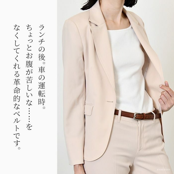 「じゅん散歩」で紹介された伸びるレザーベルトにレディース登場。創業50年のベルト工房の職人が丁寧に仕上げる極上の1本。自由にカット可能 ビジネス・スーツにも 5cm伸びるベルト 長沢ベルト工業 レディース イタリアンレザー 日本製 本革 プレゼント ギフト 女性 誕生日 ビジネス 寛ぎリラックスレザーベルト 黒 ネイビー ブラウン 長澤ベルト