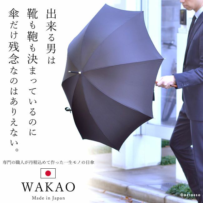細巻きがかっこいい長傘。リアルショップではこれが一番人気。傘袋付き。男性へのプレゼントにおすすめ ワカオ 日本製雨傘 メンズ長傘 55cm 細巻き バンブーハンドル タッセル おしゃれ