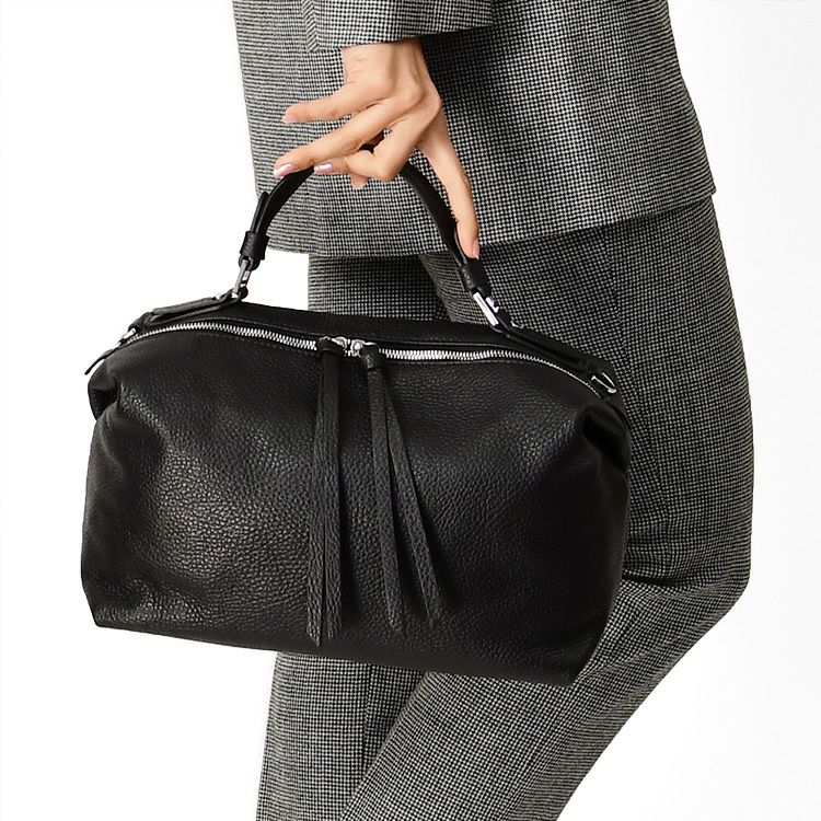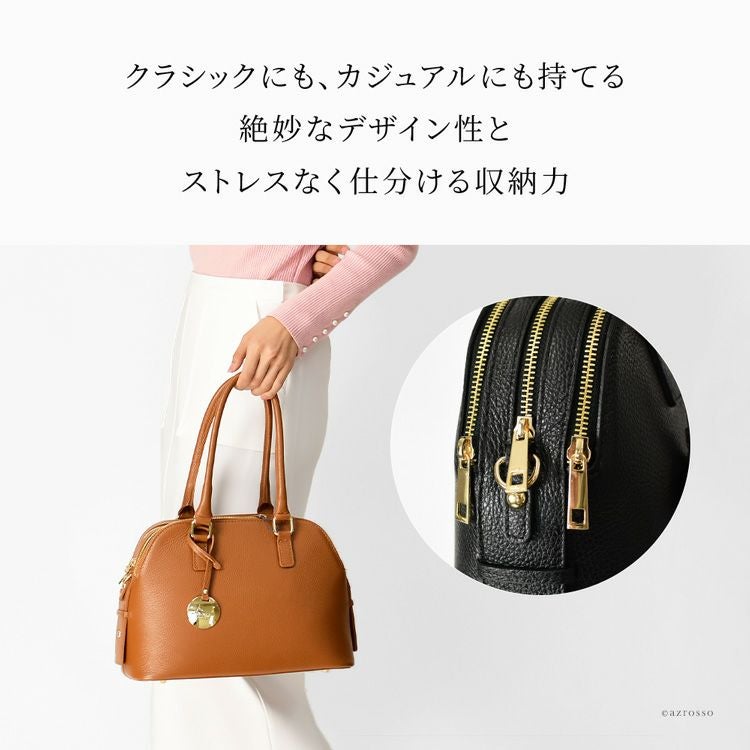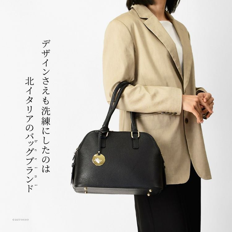 メイドインイタリーにこだわった上質で美しいドラーロレザーを使用したロリステッラのハンドバッグ。ダブルファスナーがおしゃれでショルダーにもなる2wayバッグ。 ハンドバッグ ショルダーバッグ 2way レディース ミニ 本革 イタリア製 ブランド ブラック トープ シンプル 普段使い カジュアル ロリステッラ ダブルファスナー