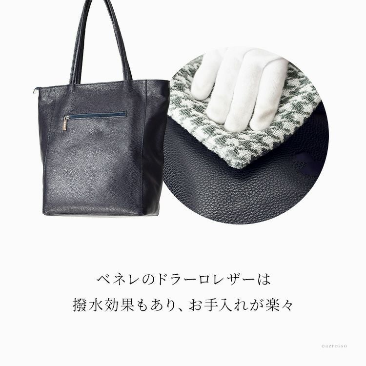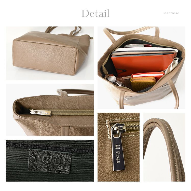 何も考えずに使える、シンプルで上質なイタリアンレザーのトートバッグ。イタリアのバッグブランドエムローズから、カジュアルや通勤に使えるレディースバッグがネイビーとトープの2色展開で登場しました。 イタリア製 トートバッグ 撥水 A4対応 本革 ブランド M Rose エムローズ ネイビー トープ 通勤 カジュアル