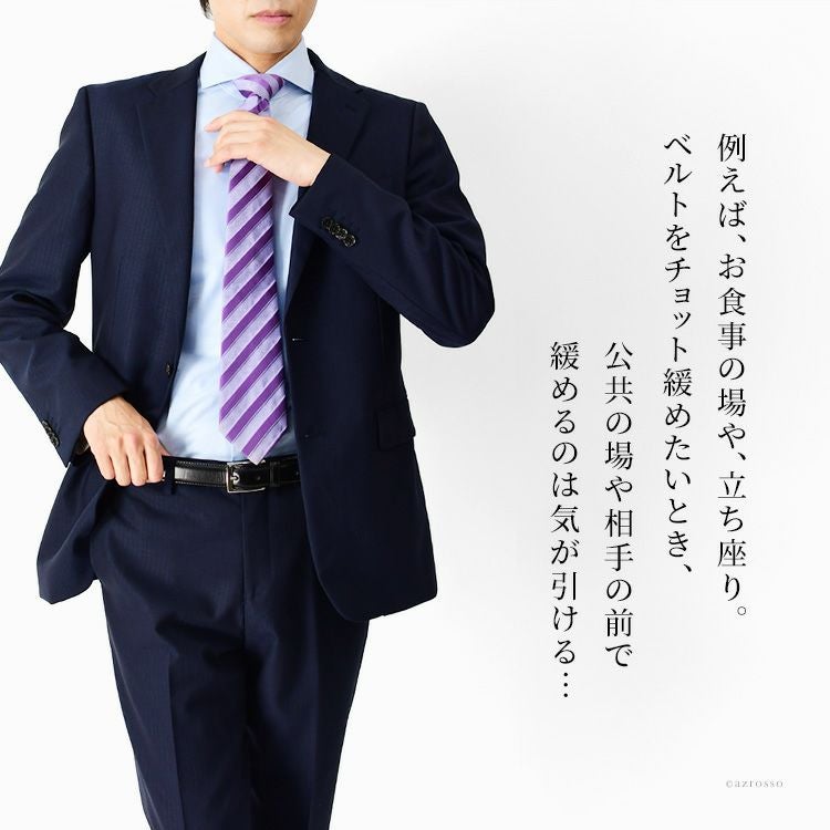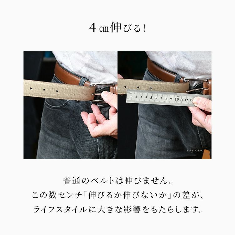 TVで紹介され話題沸騰!長沢ベルトの寛ぎリラックスレザーベルト。長さ自由にカットできてサイズ調整可能。革の聖地、姫路の上質なレザー。創業50年ベルト工房の職人が仕上げる極上の1本 4cm伸びる!お腹が楽なレザーベルト 日本製 長沢ベルト工業 姫路レザー ブランド メンズベルト ビジネスベルト