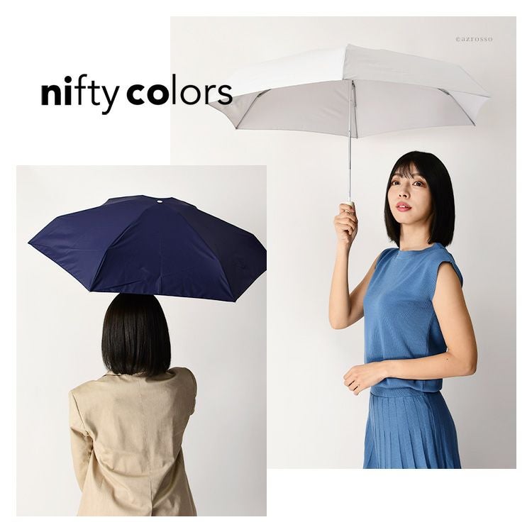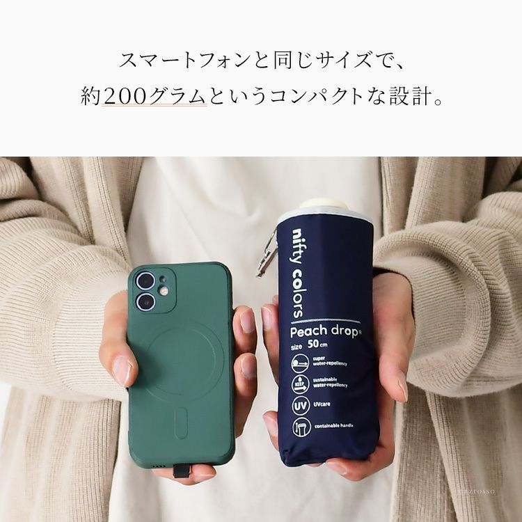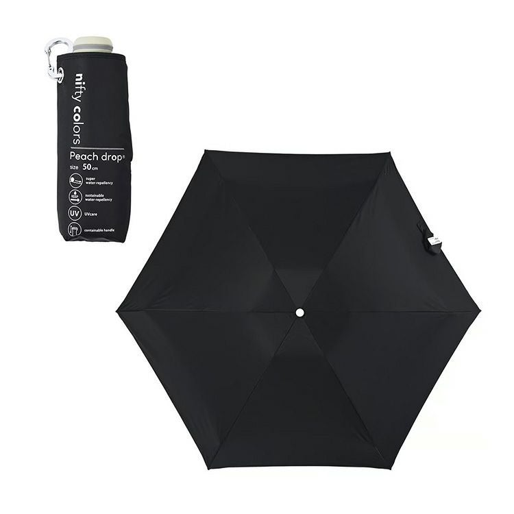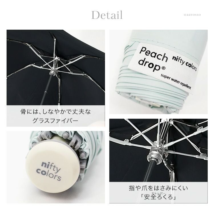 一瞬で水滴を弾く超撥水。nifty colors(ニフティカラーズ)のピーチドロップ生地の折りたたみ傘。持ち手が収納できて手よりも小さいコンパクトサイズになる晴雨兼用折り畳み傘 伸びる長い持ち手 収納できる コンパクト 超撥水 折りたたみ傘 晴雨兼用 安全ストッパー ニフティカラーズ ピーチドロップ ブラック ネイビー グレー ピンク ホワイト グリーン
