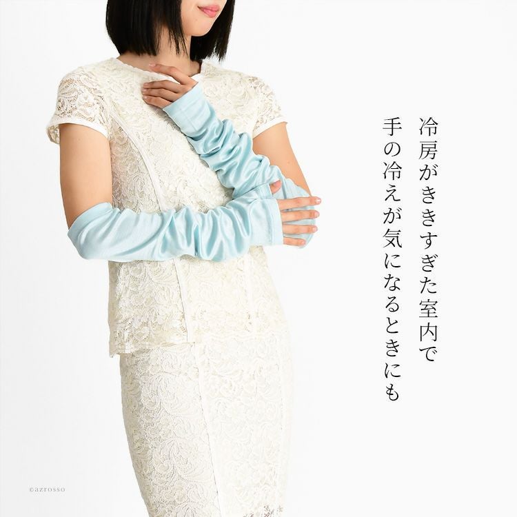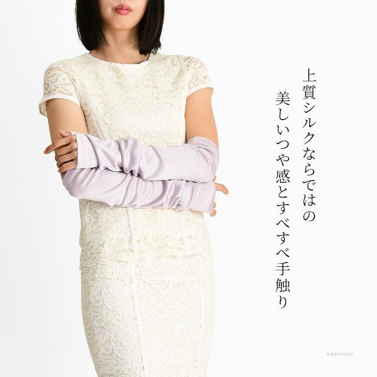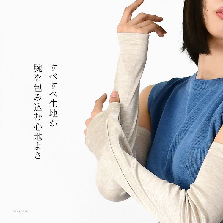 日本製の100%シルクで編まれたアームカバー。すべすべな付け心地で冷え対策や日除けにお使いいただける通気性・吸水性に優れたHASEGAWAのアームウォーマー 日本製 アームカバー シルク100% ロング丈 絹 UV対策 冷え防止 レディース すべすべ 日焼け対策 運転 自転車 通勤 【通常ネコポス配送】
