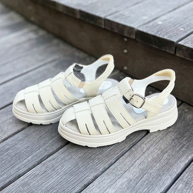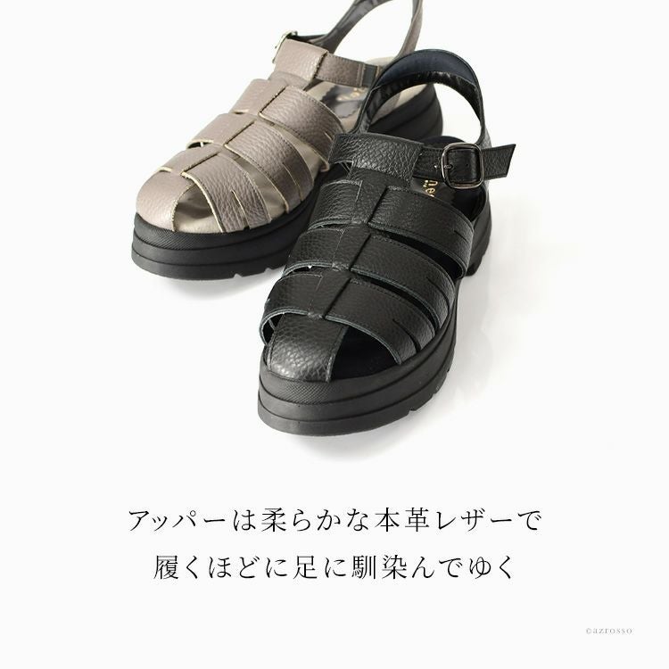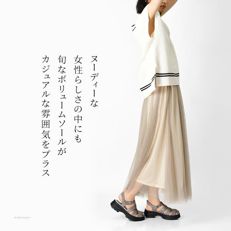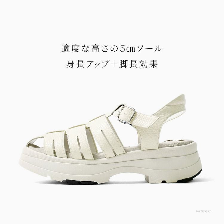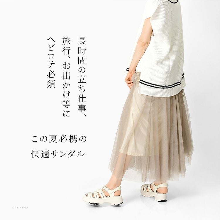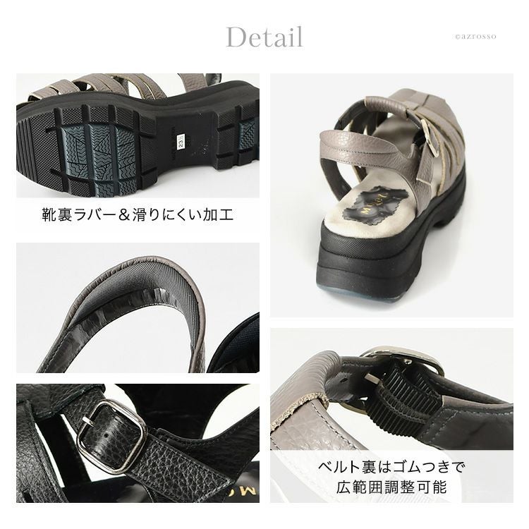 素足が悦ぶフワフワ柔らかい日本製グルカサンダル。5cmボリュームソールでトレンド感&スタイルアップ、幅広4Eで履きやすい。長時間の立ち仕事、旅行、普段履きにおすすめのレザーサンダル「Monet モネ 881309」 本革 グルカサンダル 厚底 日本製 4E 幅広 履きやすい 痛くない 柔らかい 5cmヒール ストラップ 軽量 モネ Monet レディース サンダル