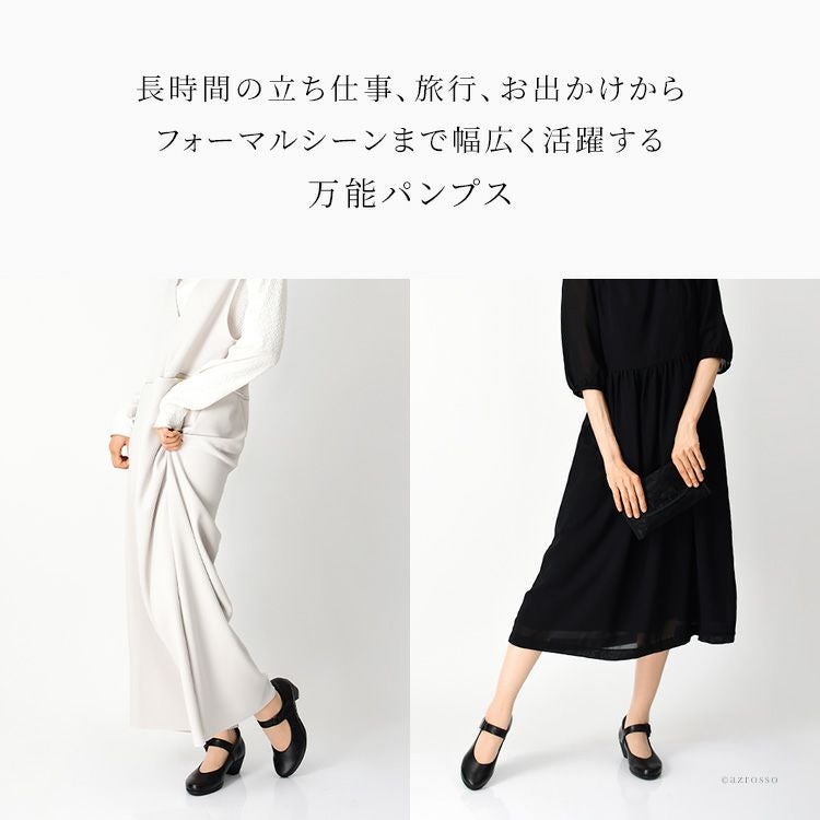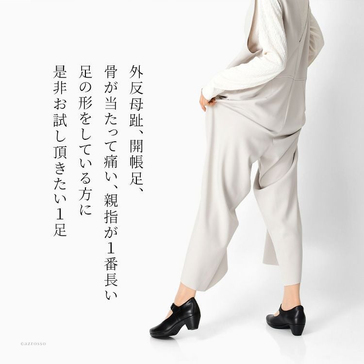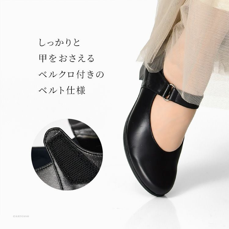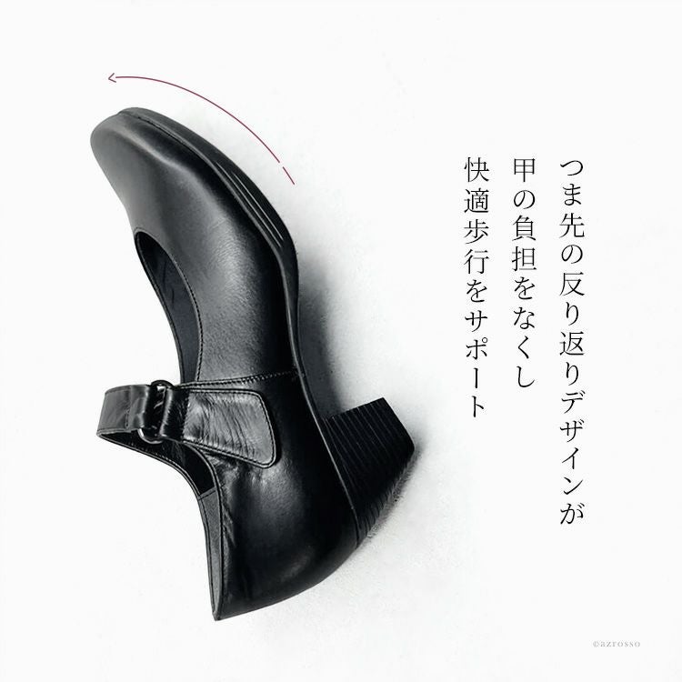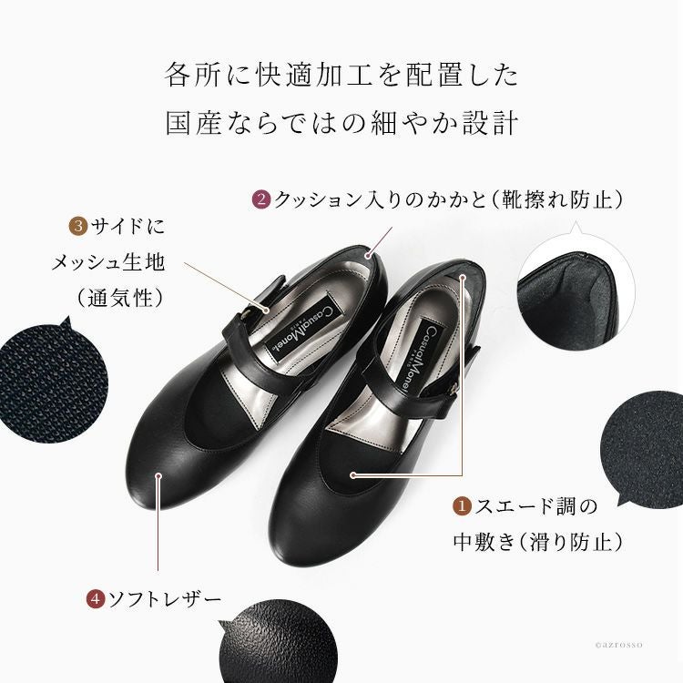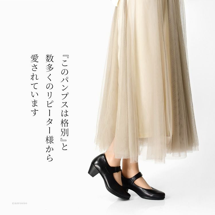 外反母趾さんも履きやすい幅広3E+オブリークトゥの日本製ストラップパンプス。5.5cmチャンキーヒールで安定感&スタイルアップ。長時間の立ち仕事やフォーマルまで重宝するブラックレザーパンプス「Monet モネ 8820」 本革 ストラップパンプス 5.5cm 太ヒール 日本製 3E 幅広 オブリークトゥ 履きやすい 外反母趾 痛くない 柔らかい モネ Monet レディース