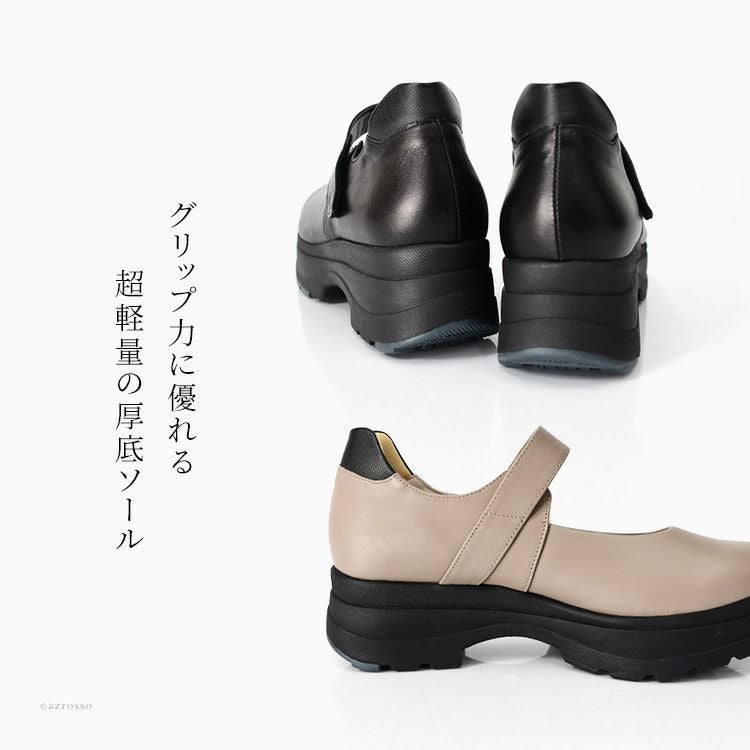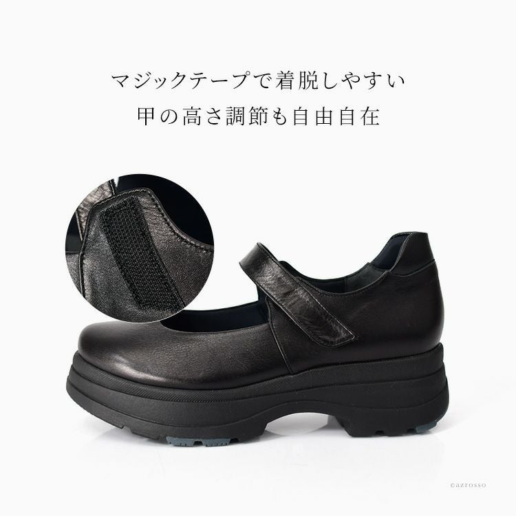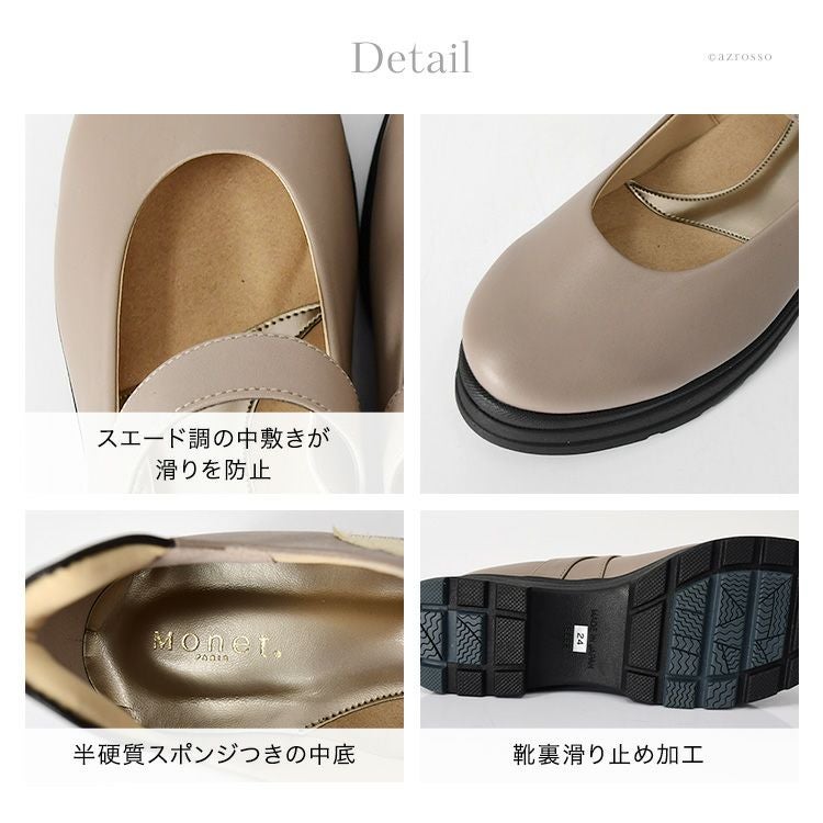 軽やかにスニーカー感覚で履ける日本製ストラップパンプス。程良い4.5cm厚底でトレンド感&スタイルアップ、幅広4Eで履きやすい。長時間の立ち仕事、旅行、普段履きにおすすめのレザーパンプス「Monet モネ 883303」 本革 ストラップパンプス 4.5cm 厚底 日本製 4E 幅広 ラウンドトゥ 履きやすい 外反母趾 痛くない 柔らかい 軽量 モネ Monet レディース