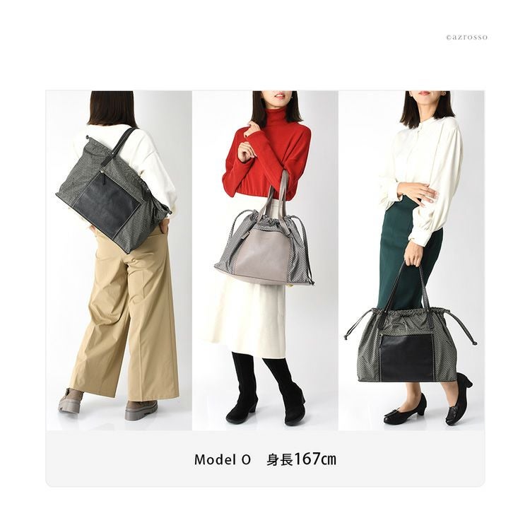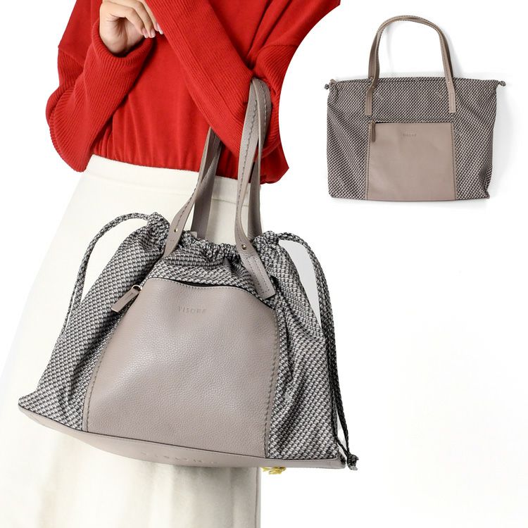 高級感漂う上質ナイロン&本革の洗練コンビ。イタリア製ブランドPLINIO VISONA(プリニオヴィソナ)の超軽量かつ大容量なトートバッグ。紐を絞るとかわいい巾着型に。コンパクトに折り畳めるきれいめ2wayビジネストート イタリア製 ナイロン&本革 トートバッグ 超軽量 巾着型 2way A4 大容量 たためる 撥水 きれいめ ブランド プリニオ ヴィソナ PLINIO VISONA レディース