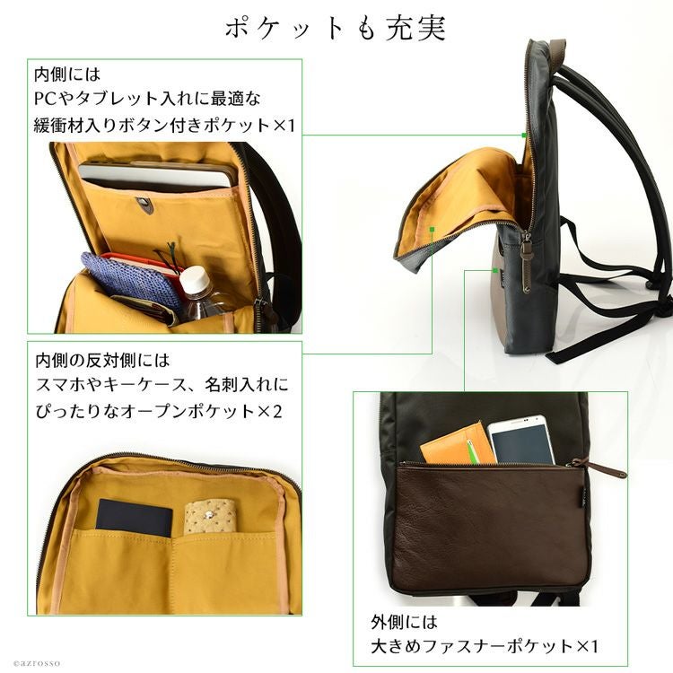 Cappuccetto Violetto カプチェット ヴィオレット|ノートPCやタブレットも安心なメンズビジネスリュック。仕事、通勤、出張、営業に 雨をはじくはっ水加工 A4もパソコンも入る 本革レザーリュック 大容量 日本製 ブランド 軽量 メンズ PC ネイビー ブラウン ブラック カーキ 撥水だから自転車通勤にも