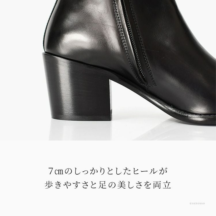 脚が細くきれいに見えるブーツカットシルエットの6cmヒールカバーブーツ。SARTORE(サルトル)を製造するイタリアの老舗工房がつくる極上レザー使用のポインテッドトゥロングブーツ イタリア製 ブーツカット ロングブーツ 本革 6cmミドルヒール ポインテッドトゥ ふくらはぎ太め ブラック イタリアブランド レディース