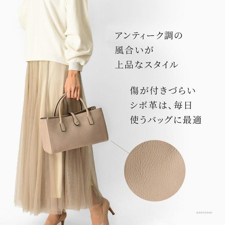 日本製のアンティーク調な風合いが上品なハンドバッグ。2wayで斜め掛けもできるレザーバッグ、広マチで普段使いからビジネスにも最適 日本製 ハンドバッグ 本革 横長 斜めがけ ショルダー バッグ 小さめ レディース 軽量 カジュアル スクエア ミニショルダー トートバッグ 2way