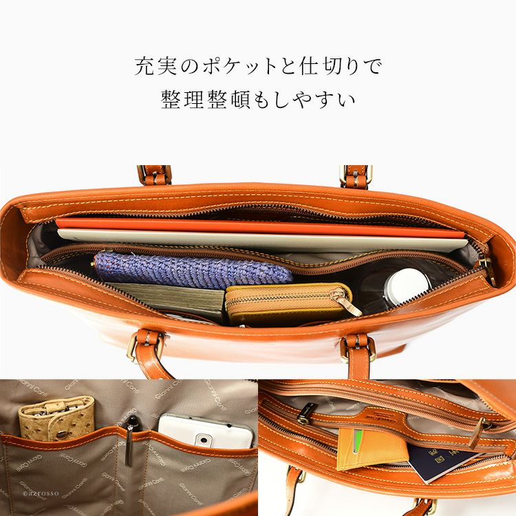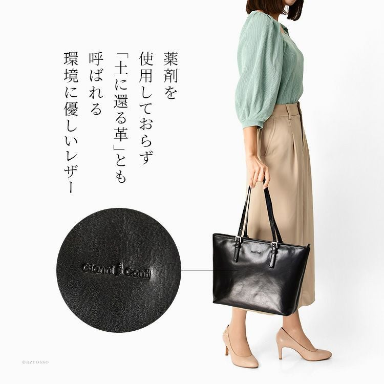 ベジタブルタンニンレザーの美しい革を使用した、大人の女性らしいトートバッグ。イタリアの鞄ブランドジャンニコンティのバッグです。 イタリア製 トートバッグ 本革 通勤 A4対応 レディース ビジネス イタリアンレザー ブラウン ブラック 大きめ 自立
