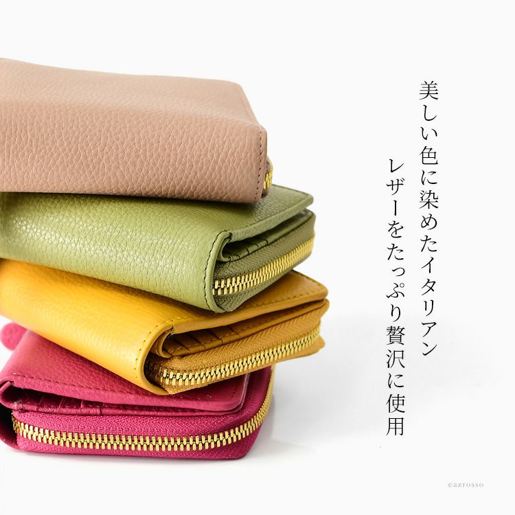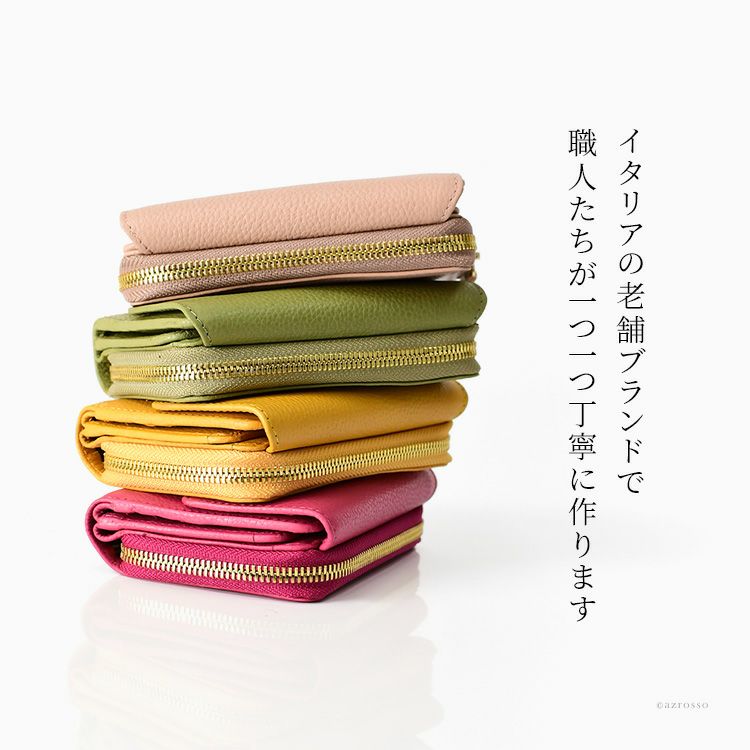 イタリアで鮮やかに鞣されたレディース2つ折り財布。大容量で機能性抜群なお財布、女性に人気な4色展開で揃えております。 イタリア製 二つ折り 財布 レディース 本革 ジャンニ コンティ Gianni Conti 大きめ 大容量 三つ折り ピンク イエロー グリーン ベージュ ブランド