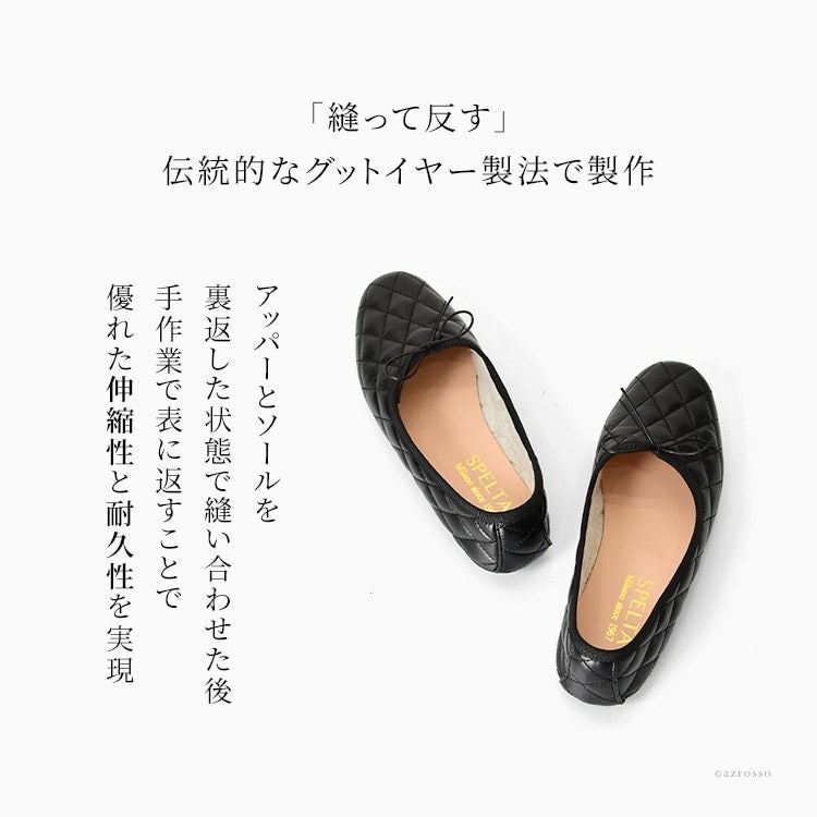 ふかふか、もちもち、気持ち良いソフトな履き心地のイタリアSPELTA(スペルタ)のキルティングシューズ。フラットながらきれいめもカジュアルもマッチするシャープなバレエシューズ キルティング フラットシューズ きれいめ バレエシューズ 本革 黒 甲深 リボン ラウンドトゥ イタリア製 ブランド レディース
